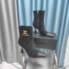 CC Ankle Boots Black Beaded Fabric And Cowhide
