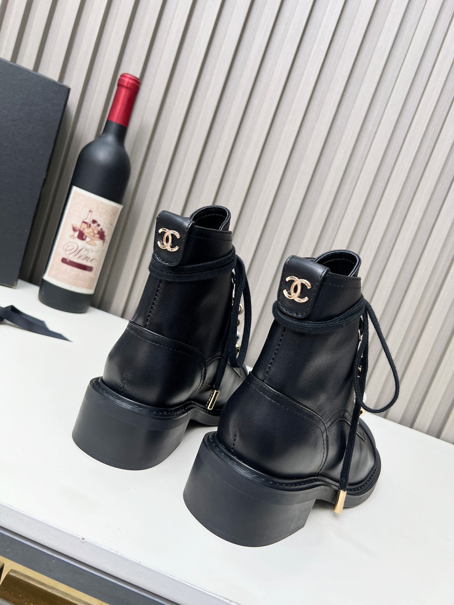 CC Combat Boots 50mm Black Calfskin And Lycra Fabric 944548