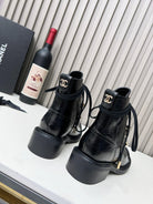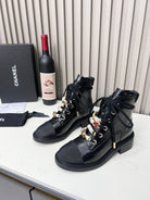 CC Combat Boots 50mm Black Glossy Calfskin And Lycra Fabric 944549