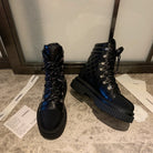 CC Combat Boots 50mm In Black Glossy Calfskin Quilted And Lycra Fabric 940073