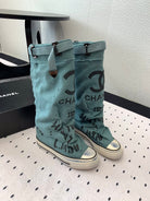 CC High-Top Canvas Boots Turquoise Black Denim Fabric 938047