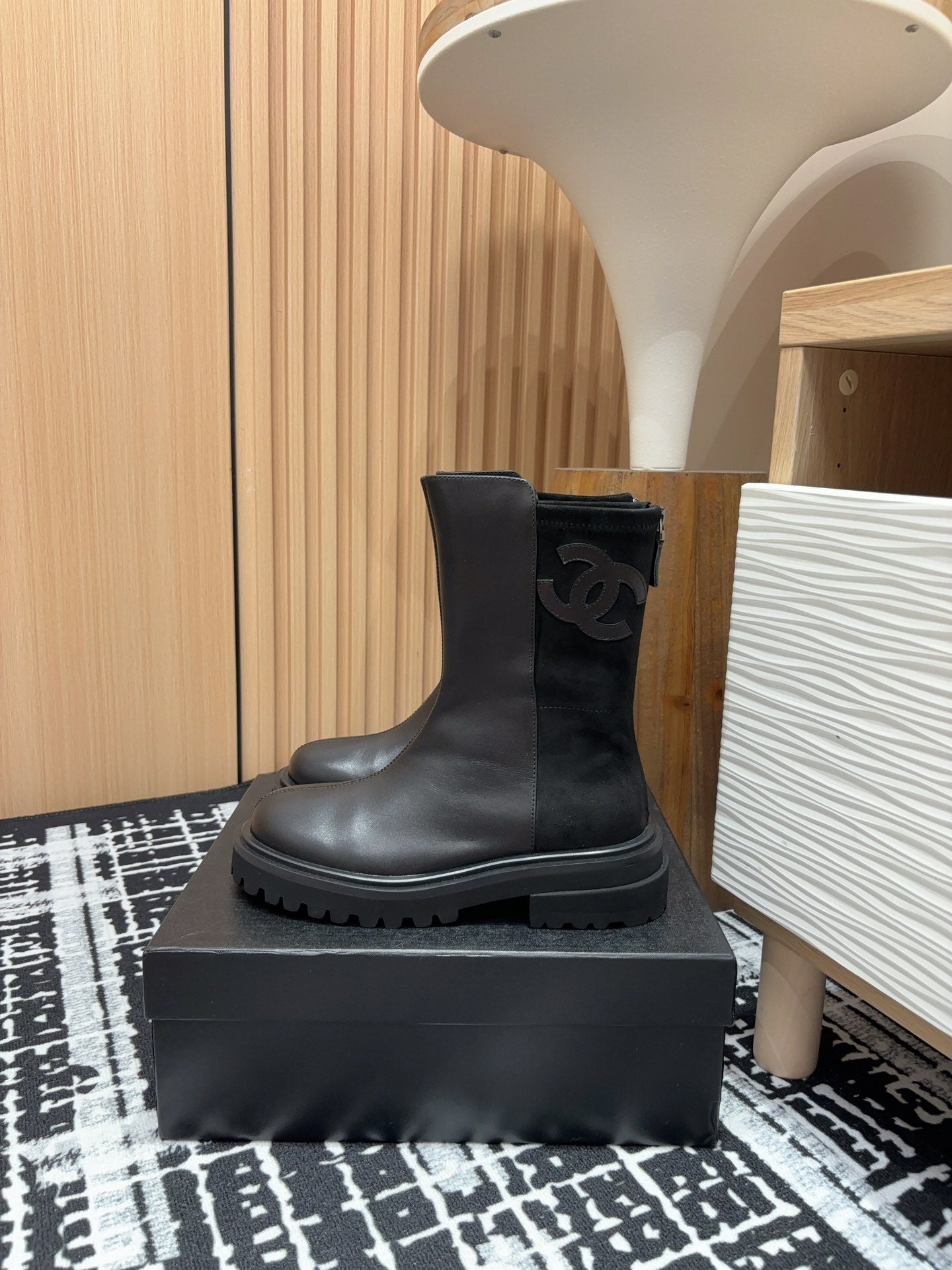 CC Short Boots 45mm Plain Black Calfskin And Suede