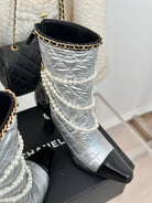 CC Short Boots 80mm Silver Wrinkled Quilted Calfskin