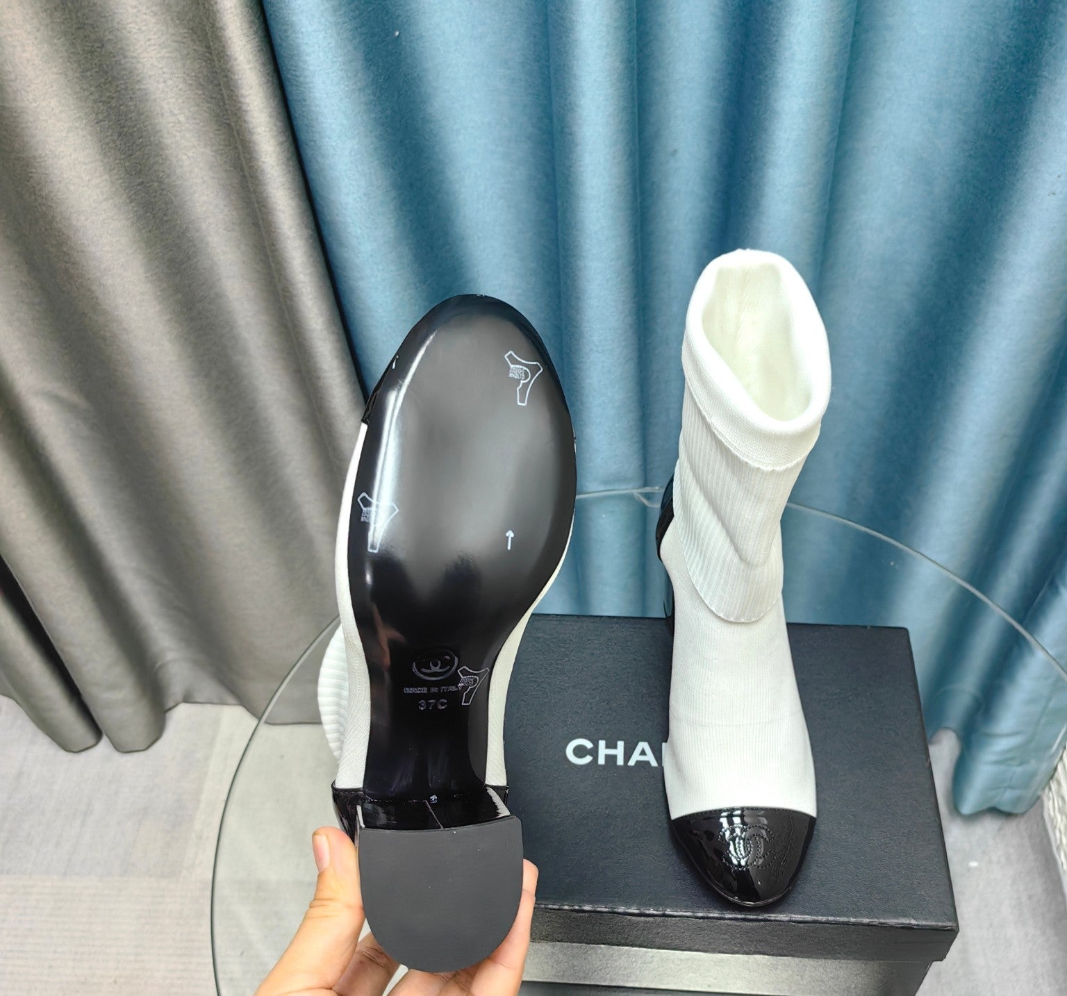 CC Short Boots 80mm White Wool Fabric And Lambskin