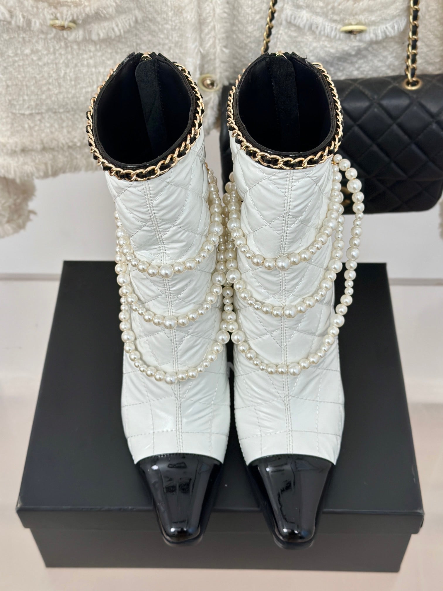 CC Short Boots 80mm White Wrinkled Quilted Calfskin