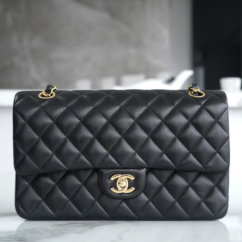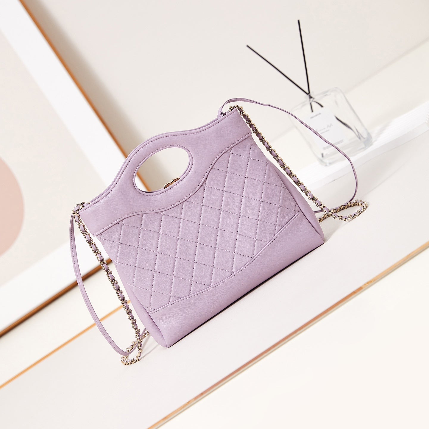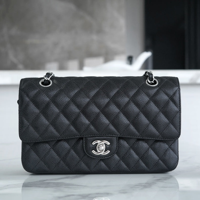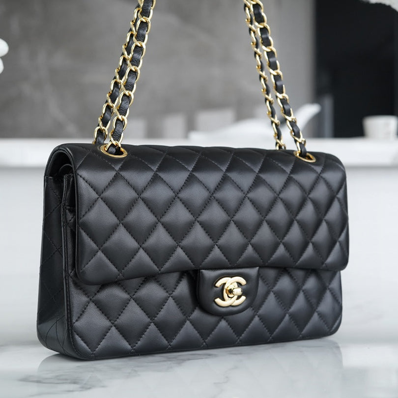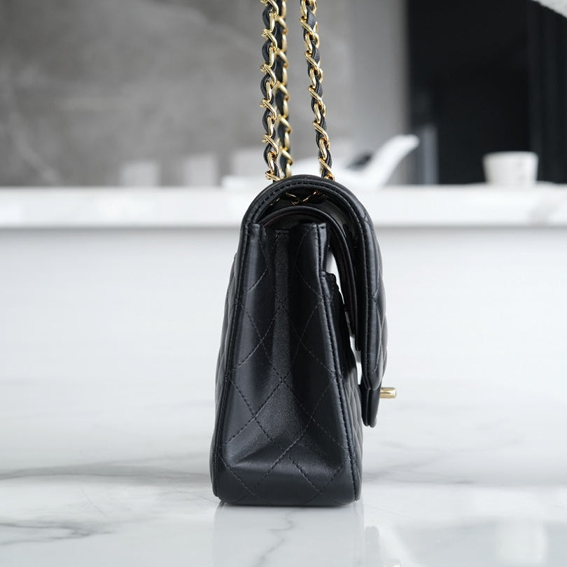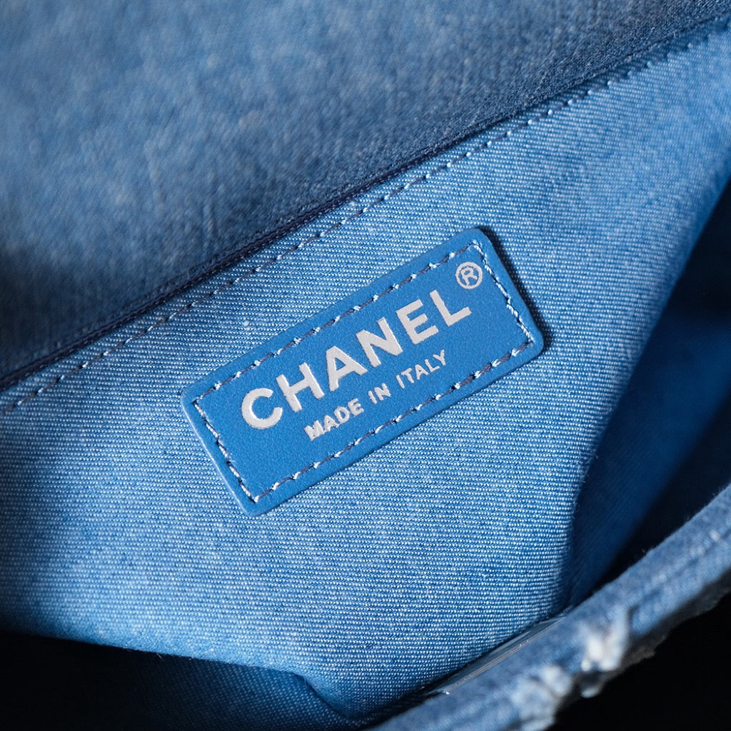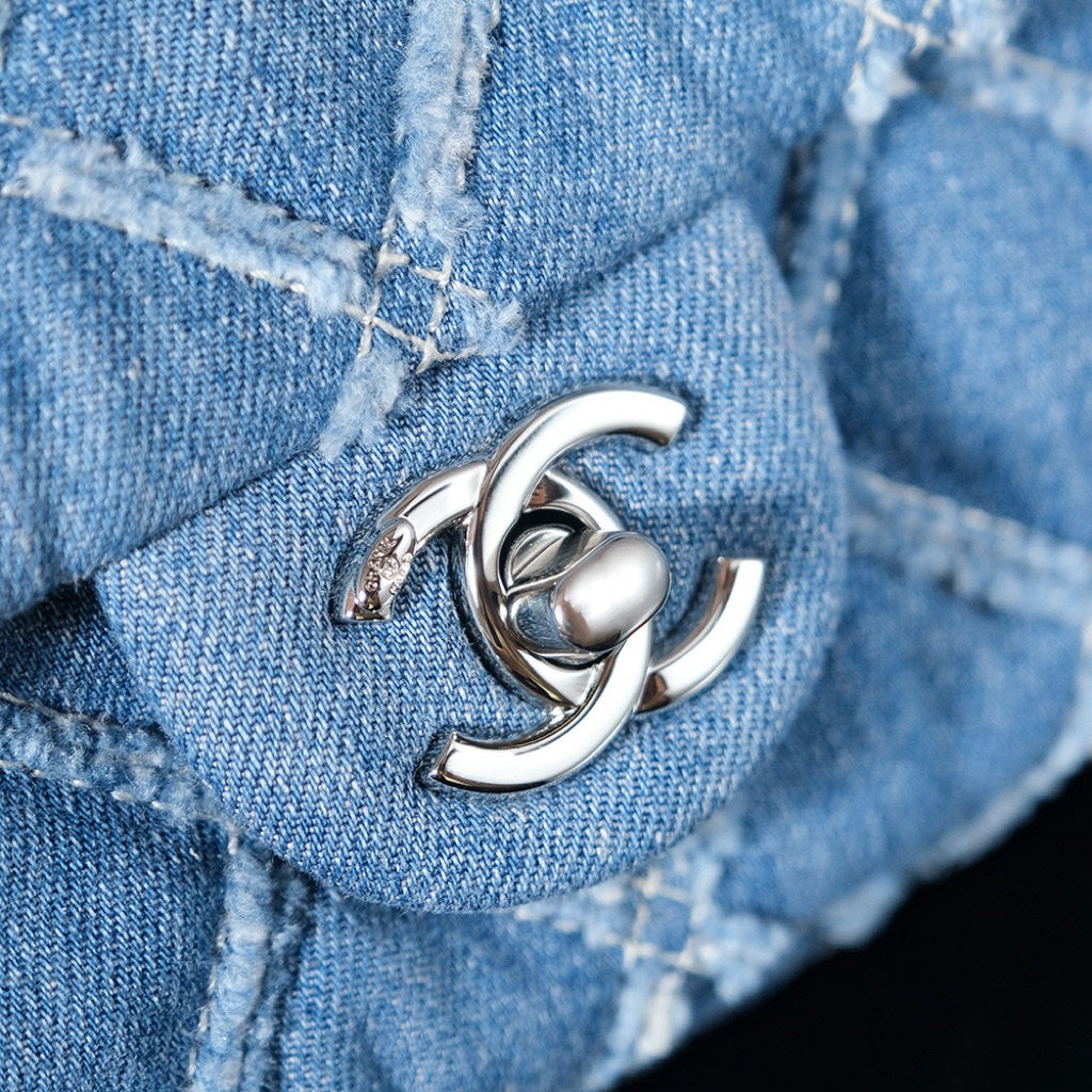 24S Flap Bag 20cm Blue Quilted Denim