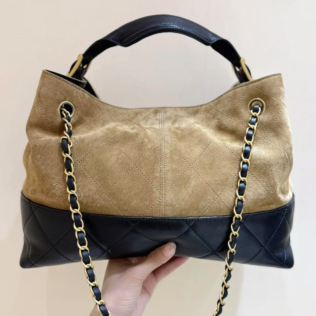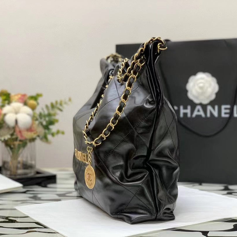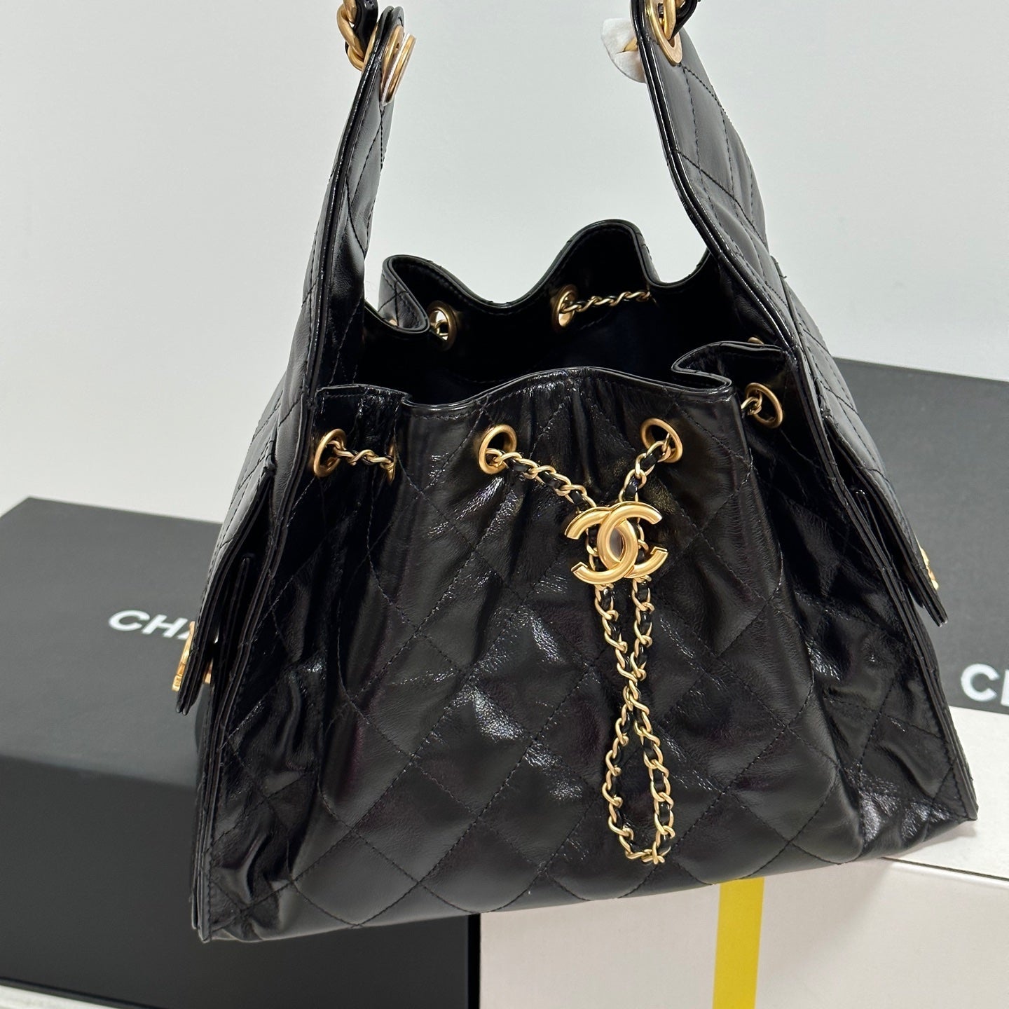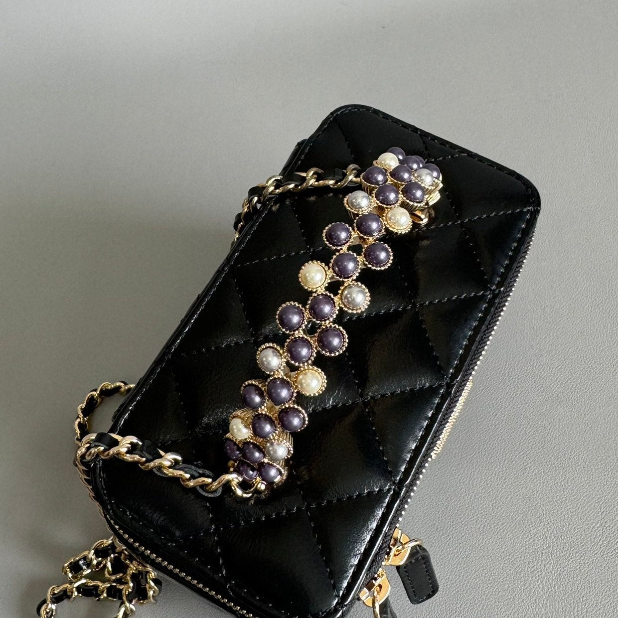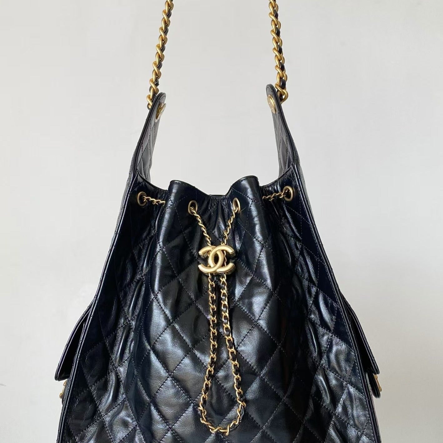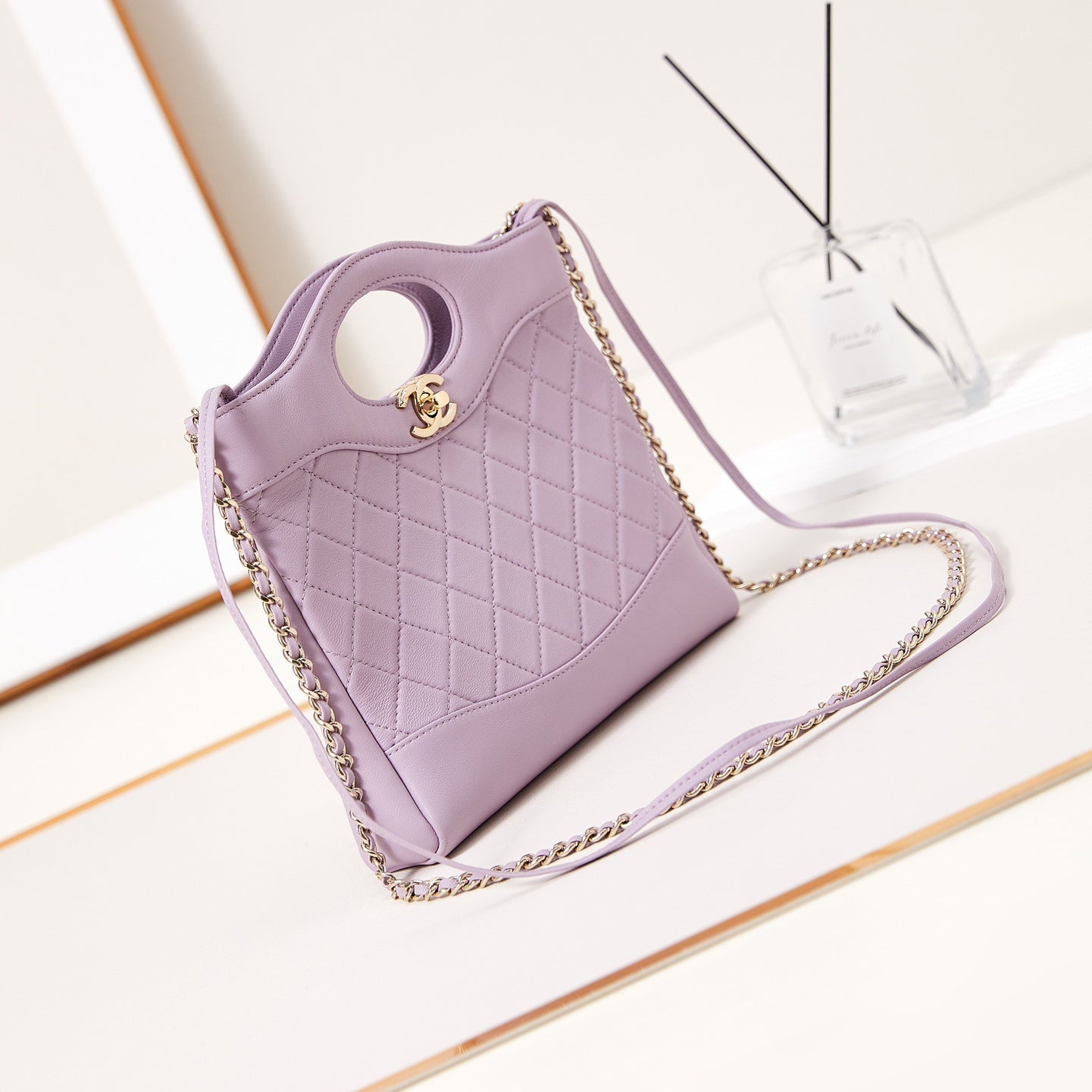 24S Flap Bag 20cm Blue Quilted Denim