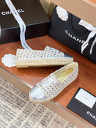 cc espadrilles beige black woolen cloth silver metalic lambskin