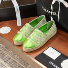 cc espadrilles beige green woolen cloth green metalic lambskin