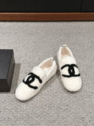 CC LOAFERS IN WHITE FLEECE WITH BLACK LOGO