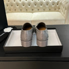 CC Moccasins Glossy Silver Gray Cowhide
