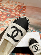 ccc espadrilles white grey tweed black grosgrain