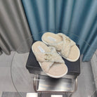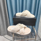 CC Crisscross Slippers White Pattern Fleece Wool