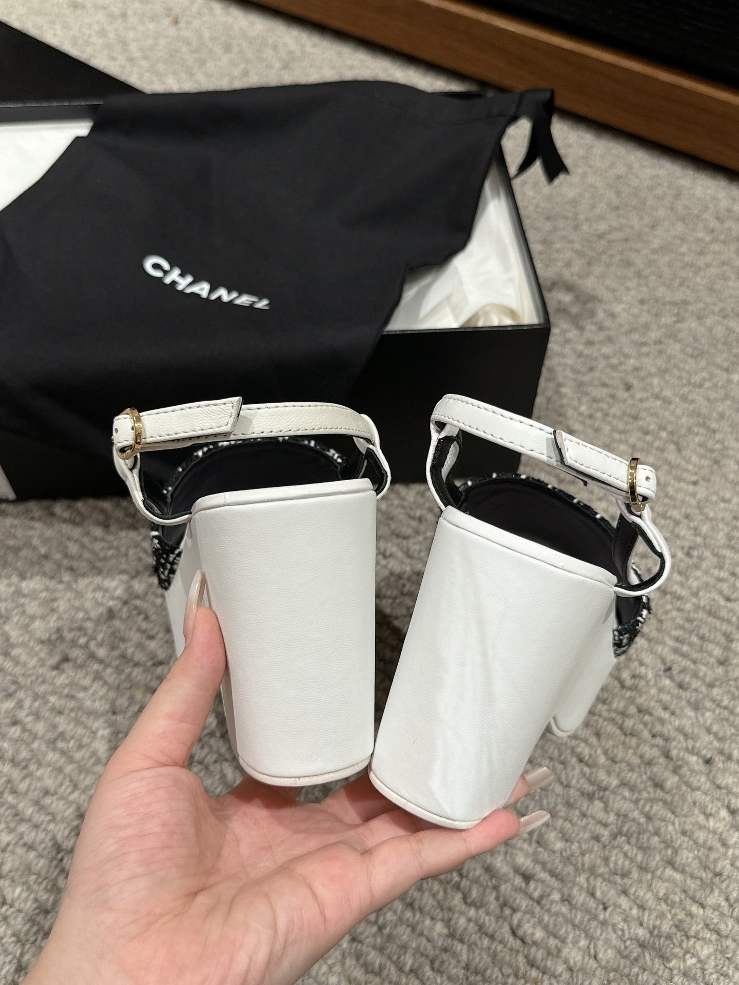 cc sandal 100 black white tweed sequin