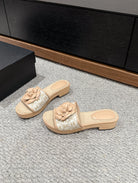 cc sandal flower white canvas beige calfskin