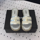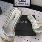 mule sandal white tweed silver metalic calfskin