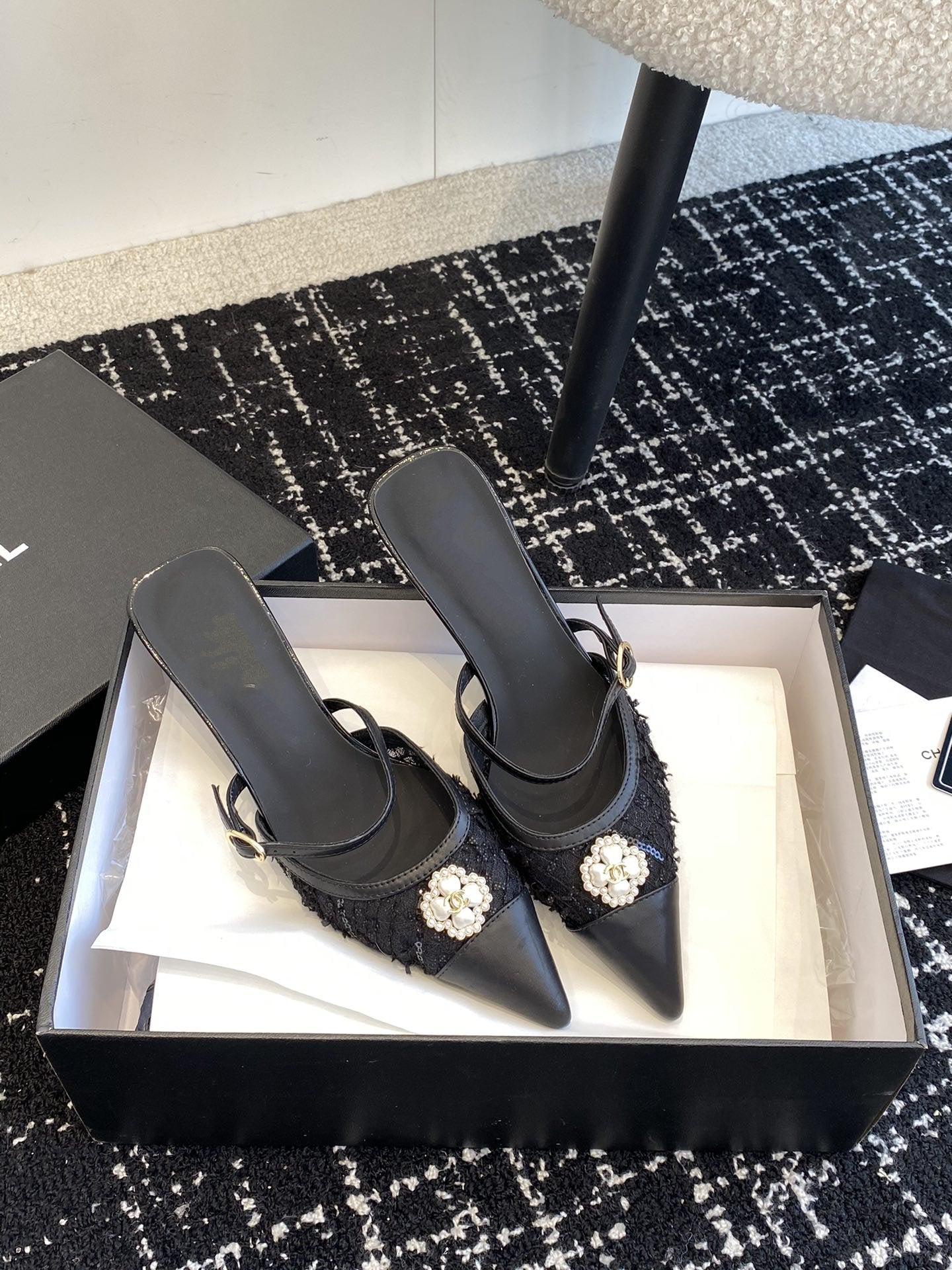 mule sandal black tweed lambskin