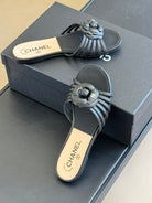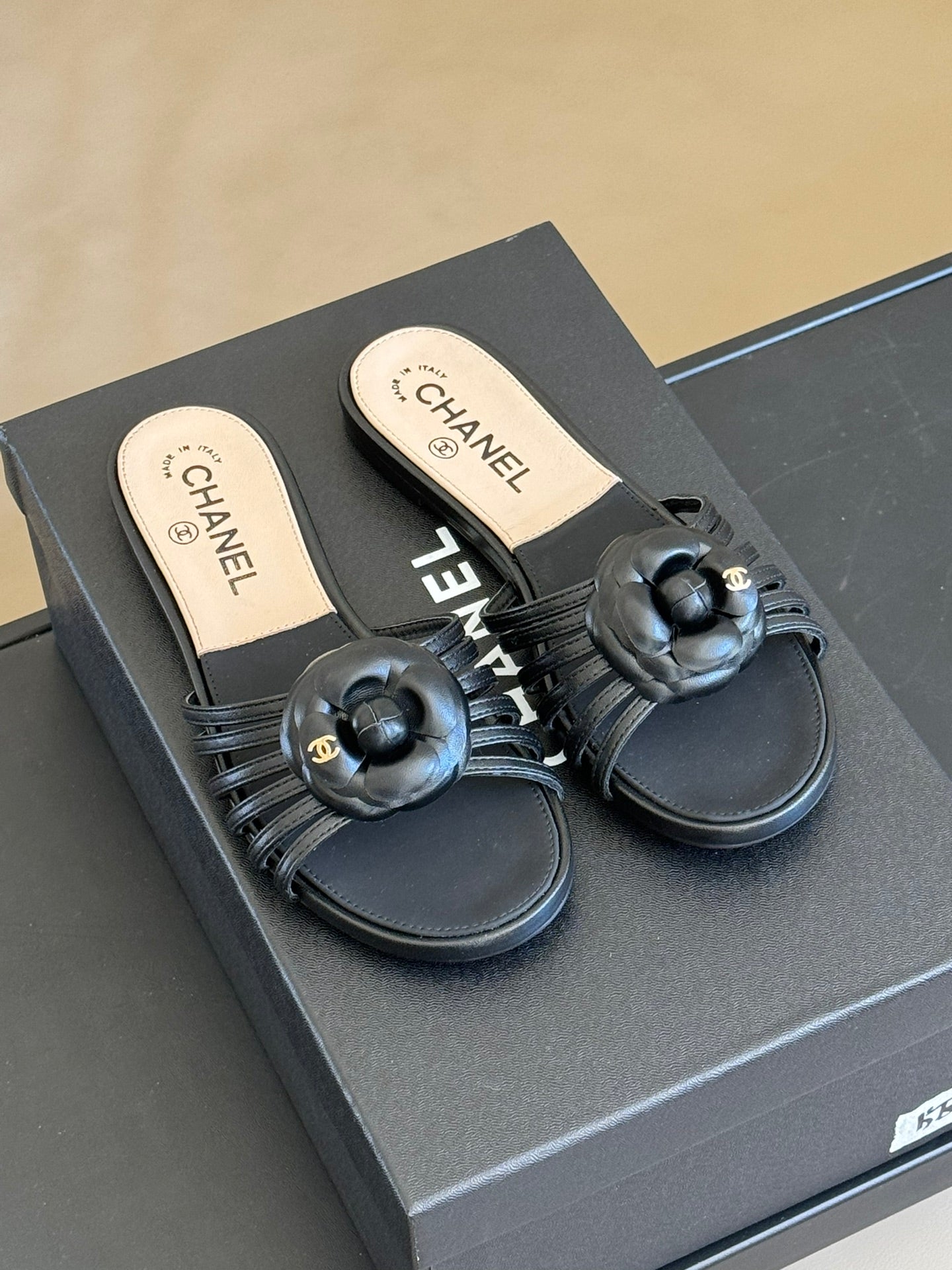 mule sandal flower black beige lambskin