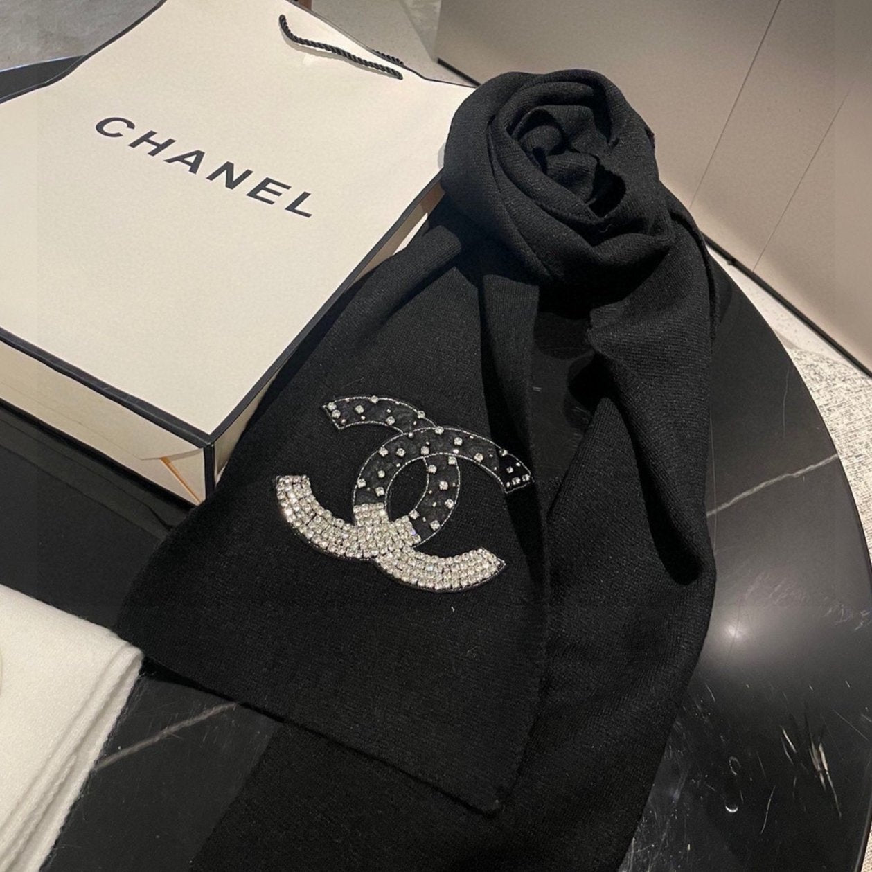 CC Rhinestone-Embellished Shawl 180 CM In Black Cashmere Wool 363687