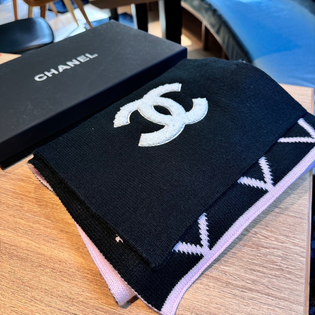 CC Scarf 180 CM In Black Mix Pink Wool 421510