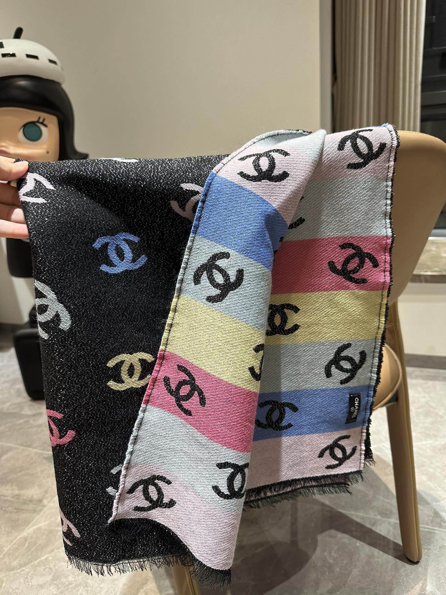 CC Scarf 180 CM In Black Mix Rainbow Cashmere And Wool Mix Mulberry Silk 340229