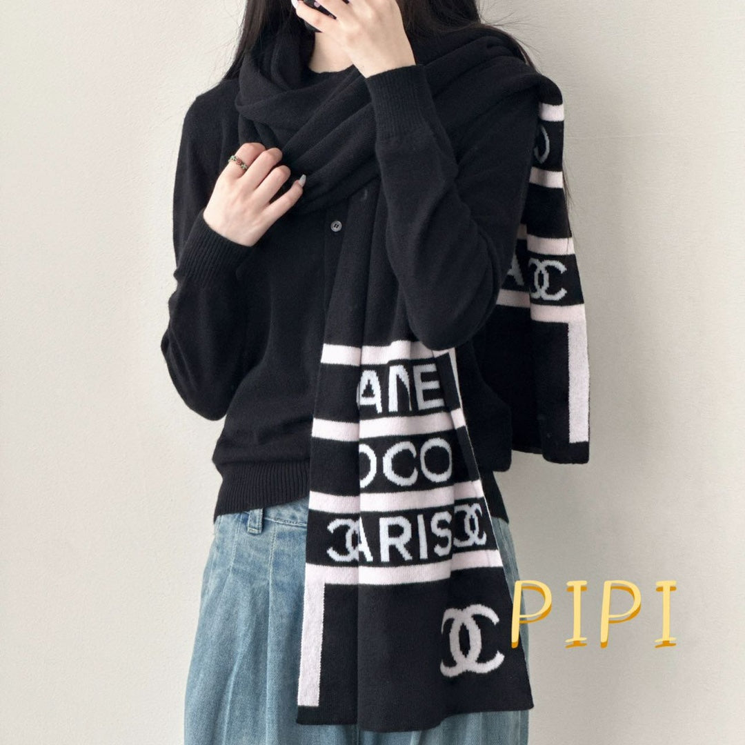 CC Scarf 180 CM In Black Mix White Cashmere 383979