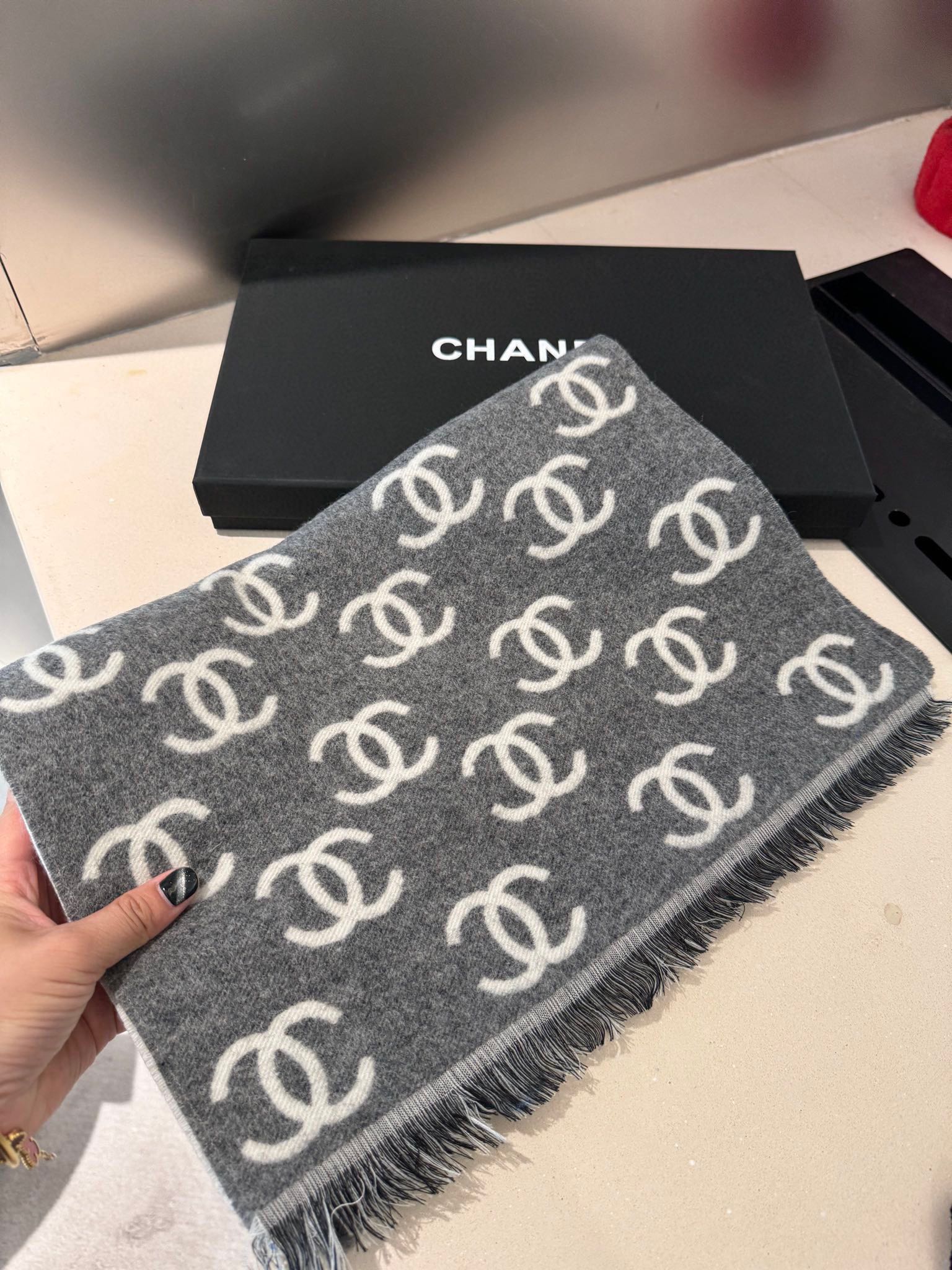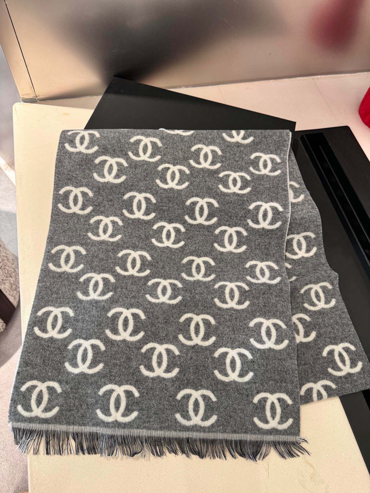 CC Scarf 180 CM In Dark Grey Mix Light Grey Print Logo Wool And Cashmere 359268
