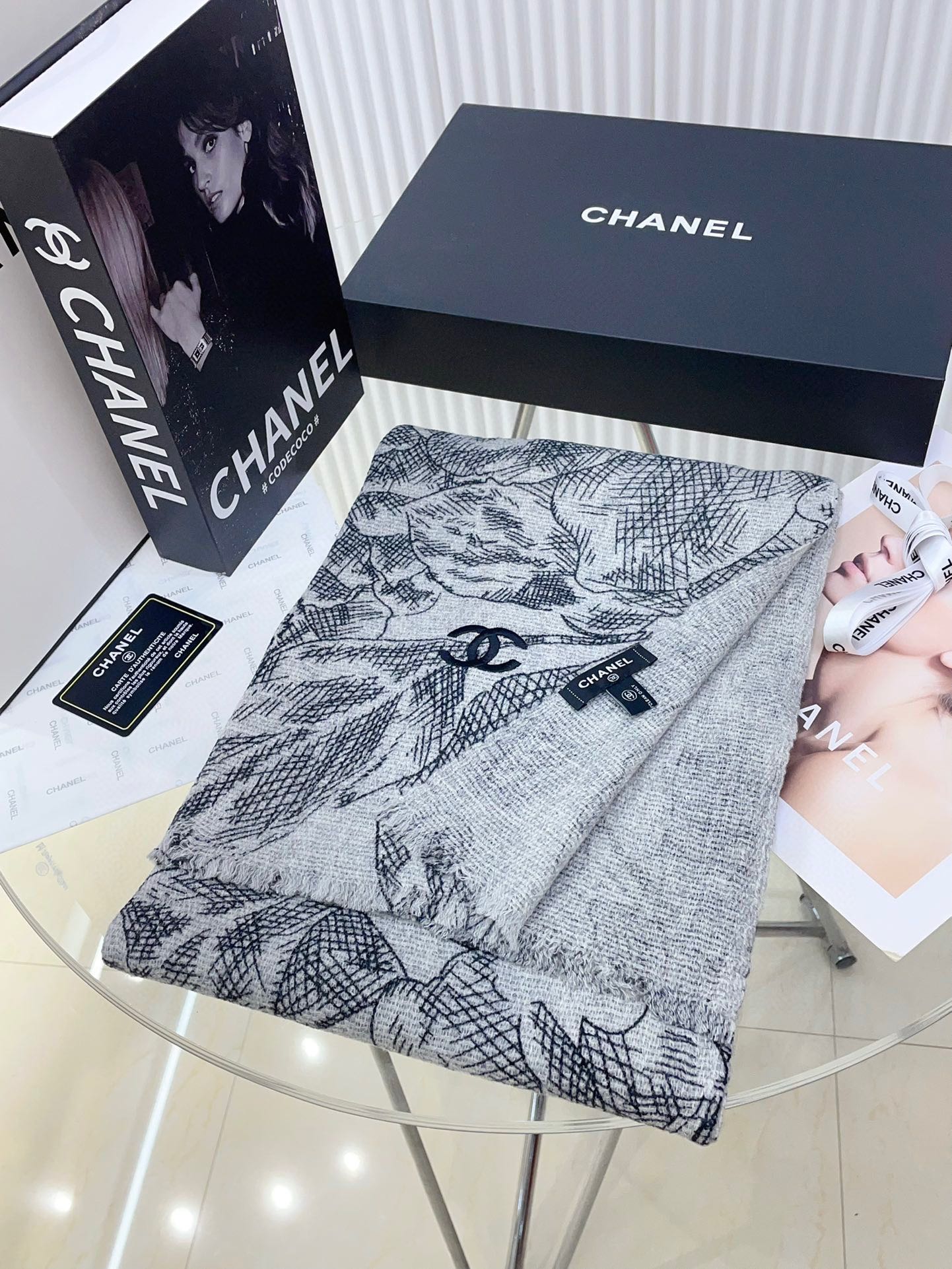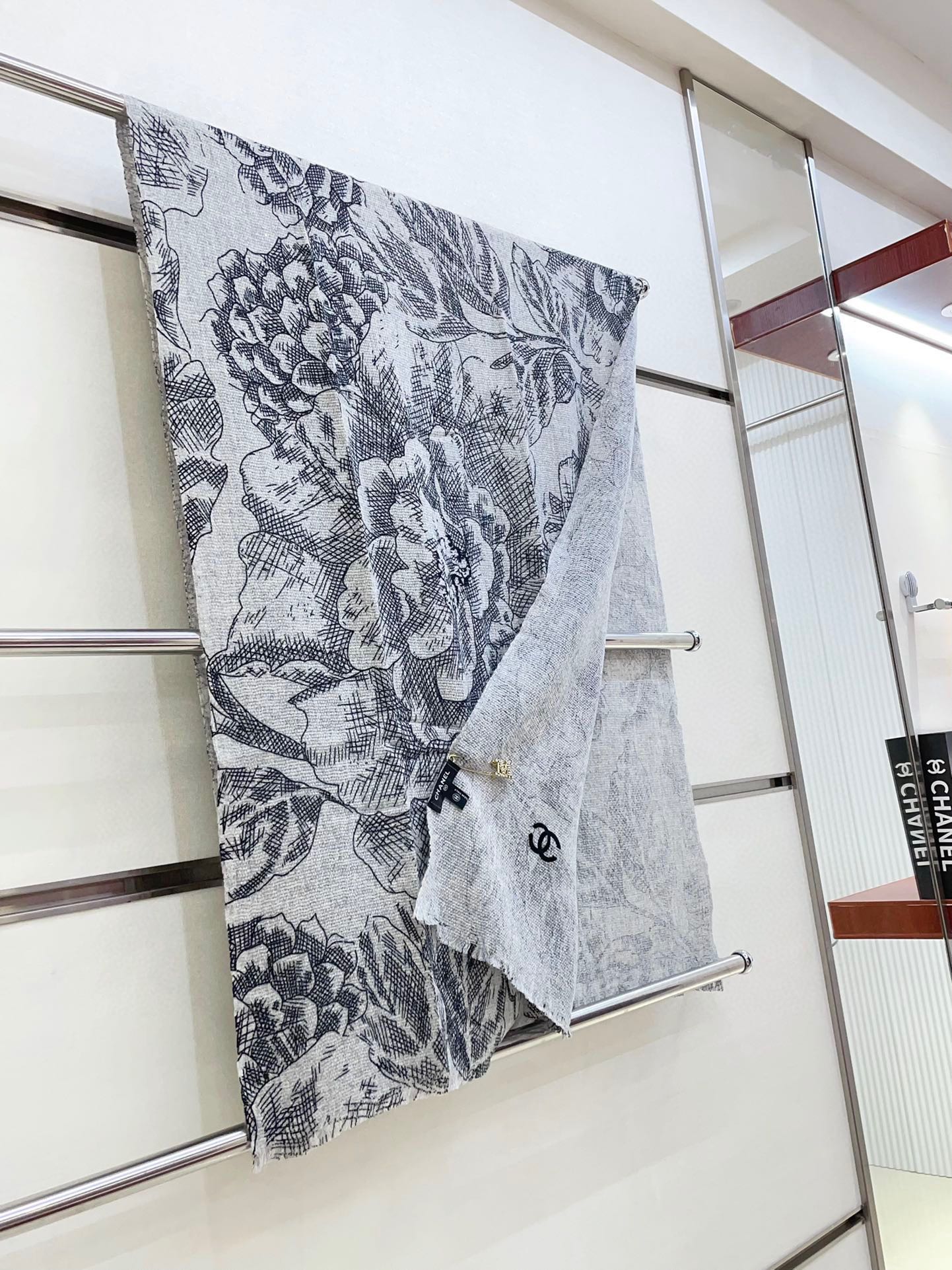 CC Scarf 180 CM In Grey Black Cashmere 419805