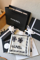 CC Scarf 180 CM In White Black Cashmere Silk 401133