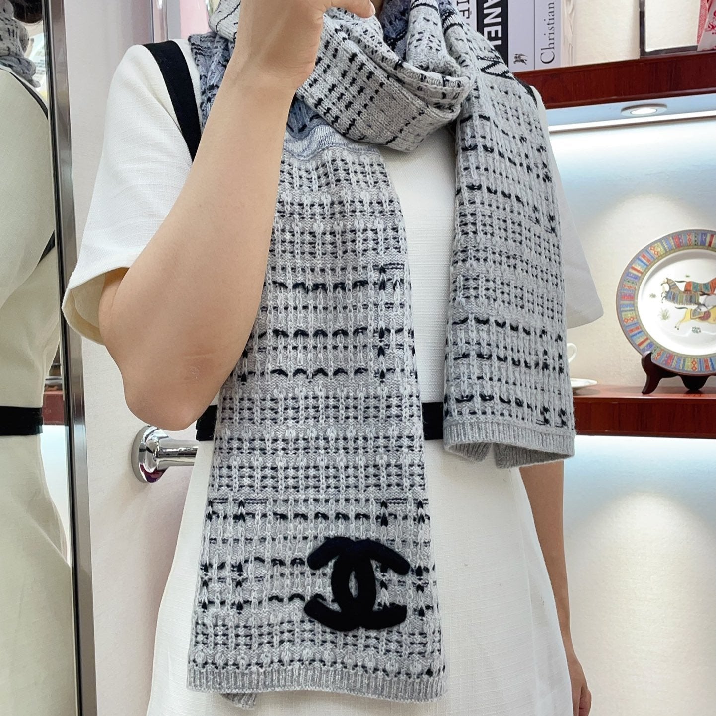 CC Scarf 180 CM In White Grey Mix Black Wool 388185