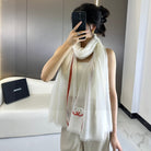 CC Scarf 180 CM In White With Red Border Cashmere Silk 287510