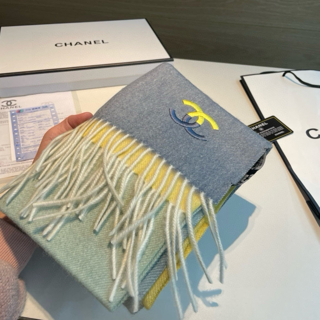 CC Scarf 180 CM In Yellow Mix Grey Light Turquoise Cashmere 387914