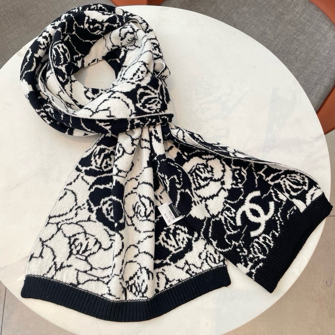 CC Scarf 185 CM In Black Mix White Cashmere And Wool 411652