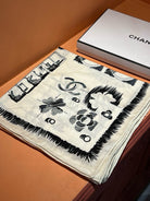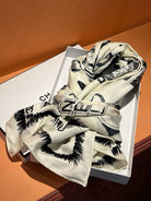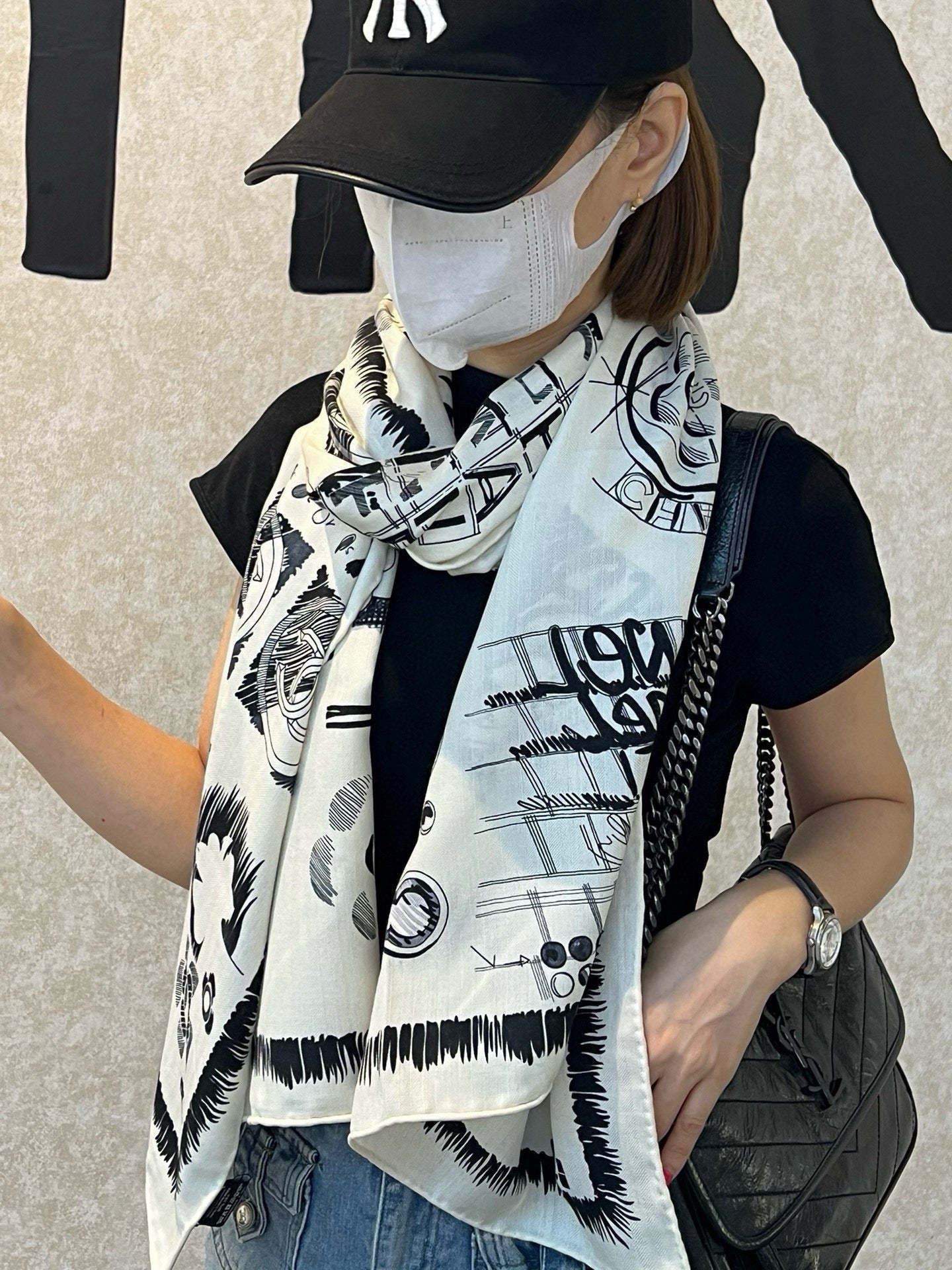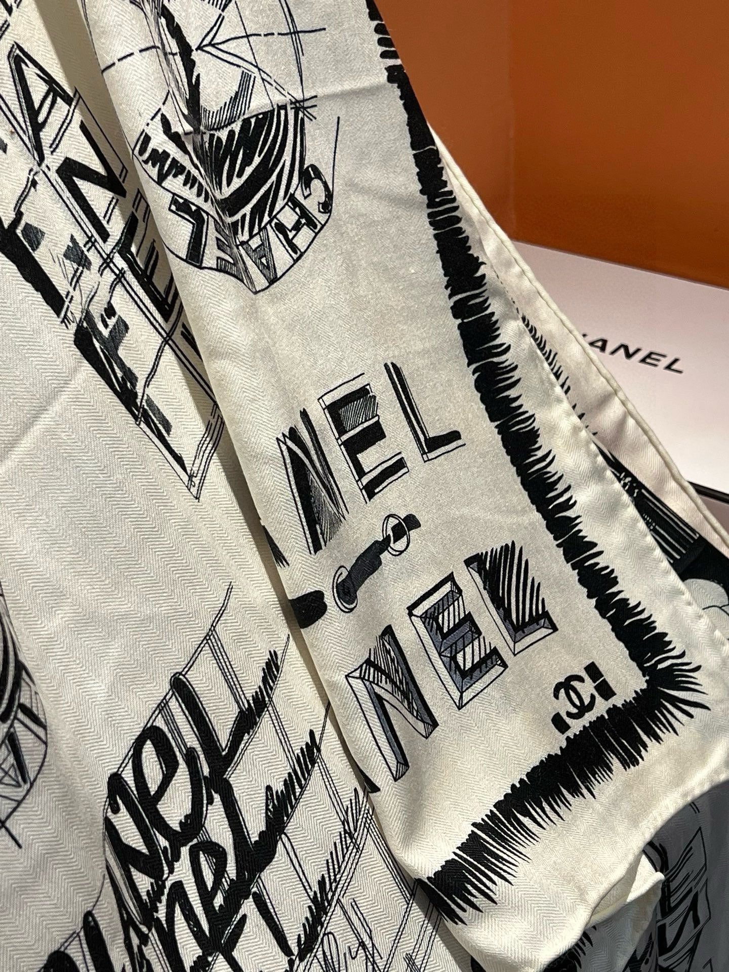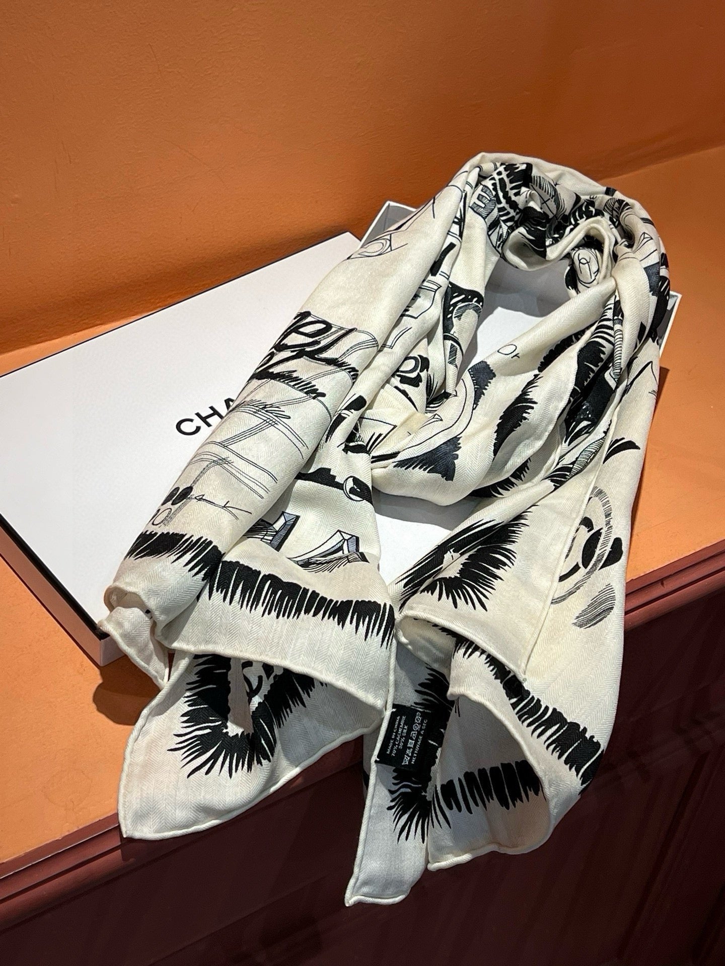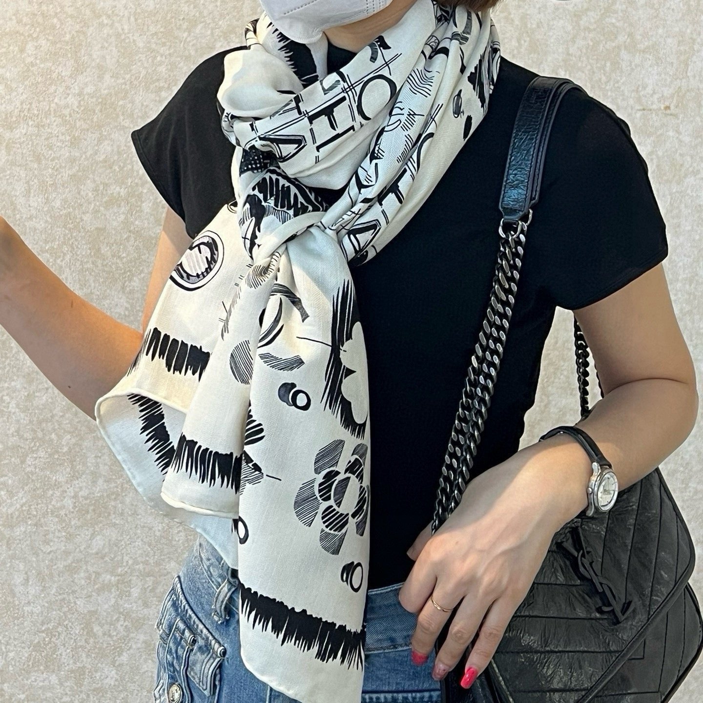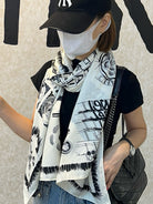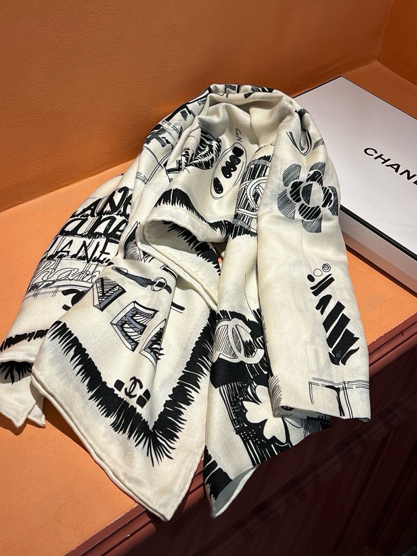 CC Scarf 185 CM In White Black Cashmere Silk 182460