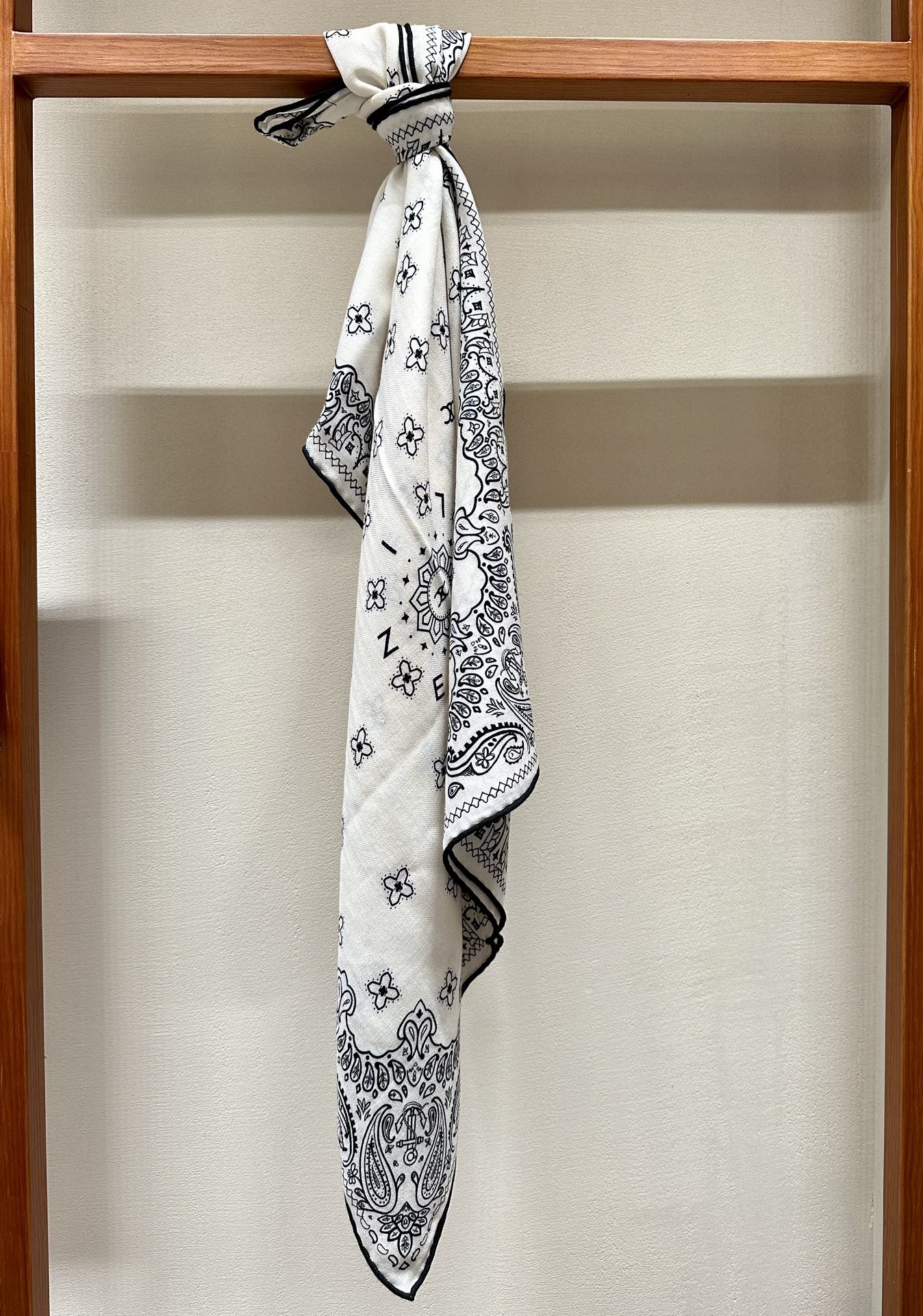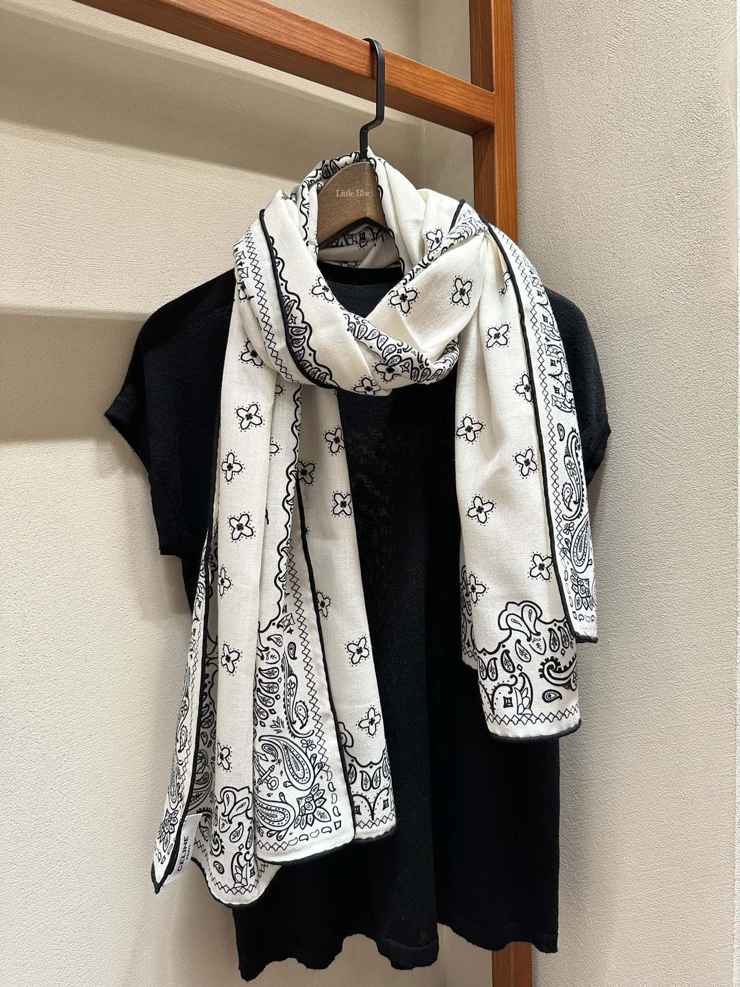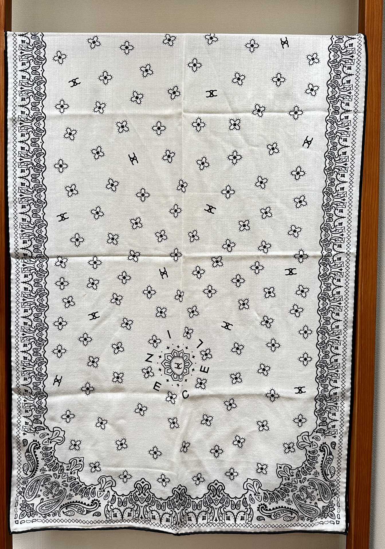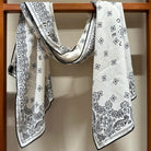 CC Scarf 185 CM In White Black Printed Pattern Cashmere Silk 371904