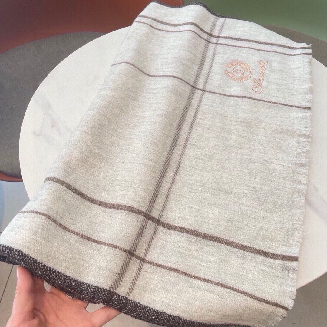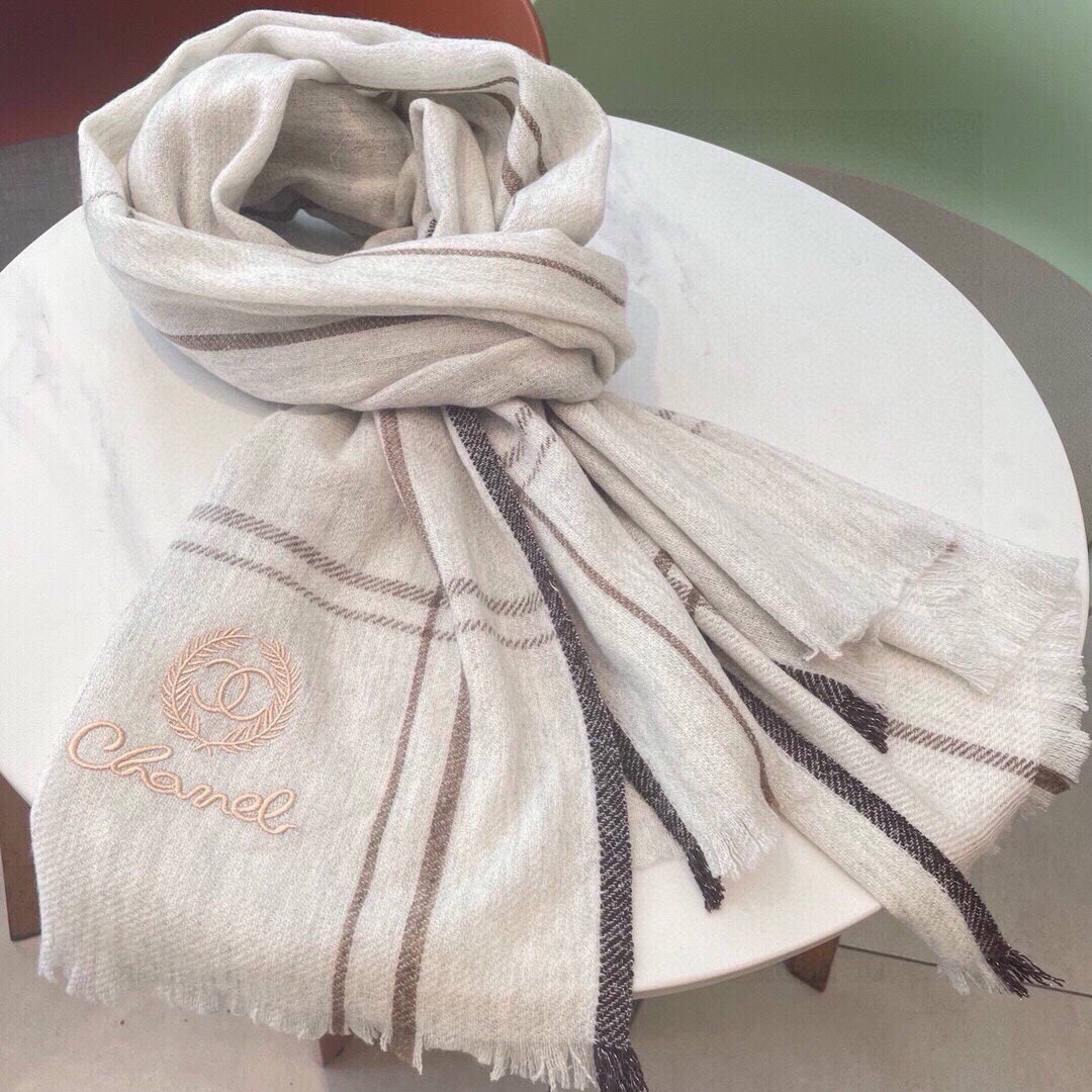 CC Scarf 190 CM In Light Grey With Brown Stripes Cashmere 411650