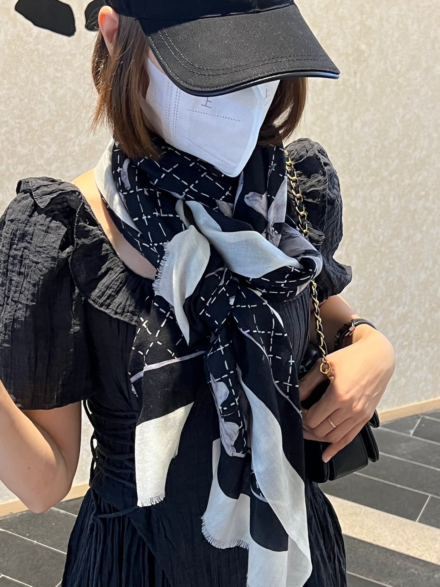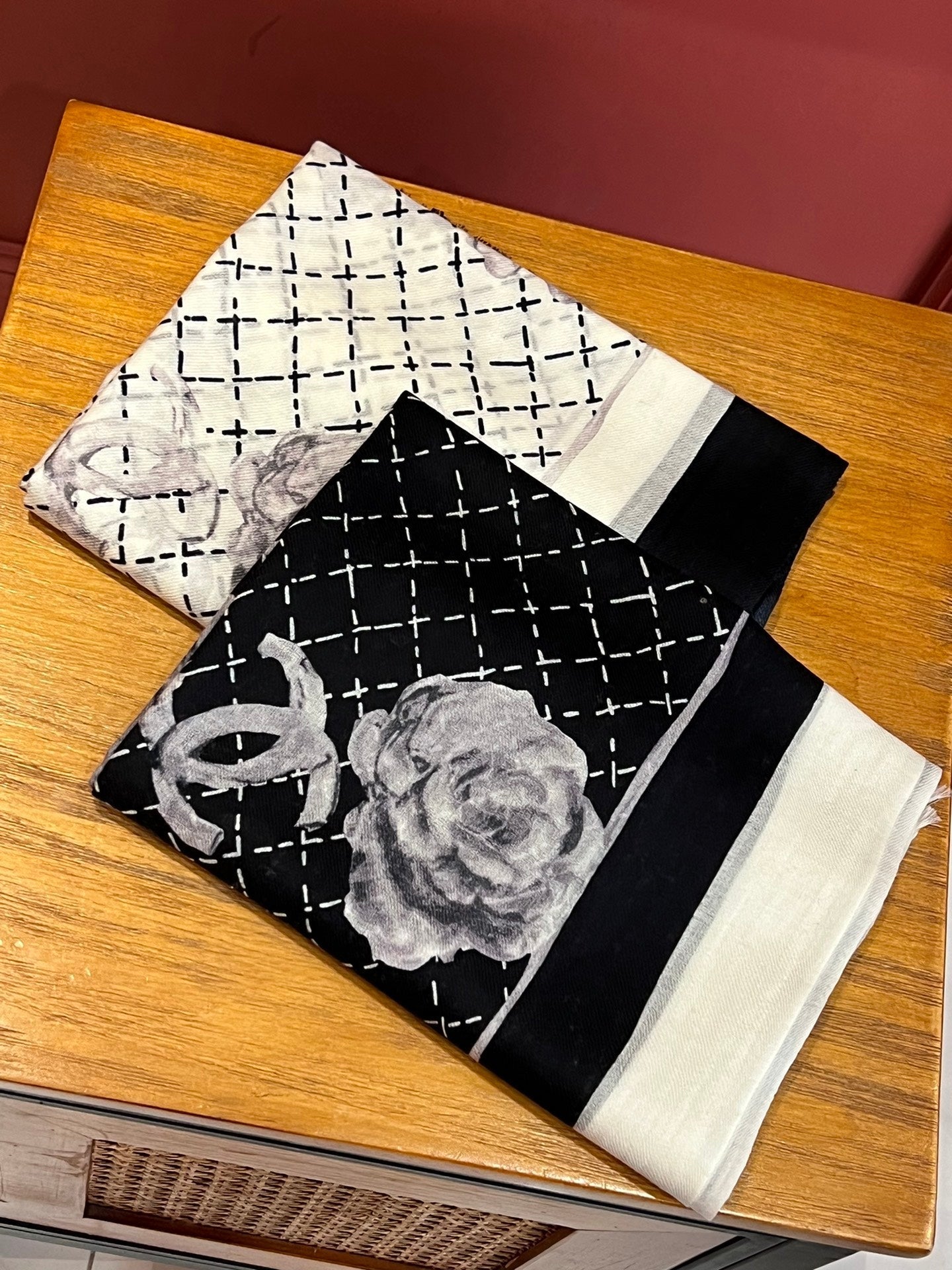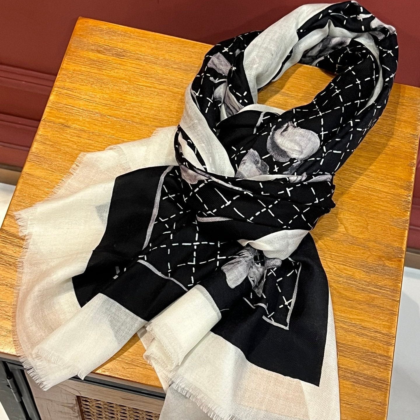 CC Scarf 200 CM In Black White Cashmere Silk 255991