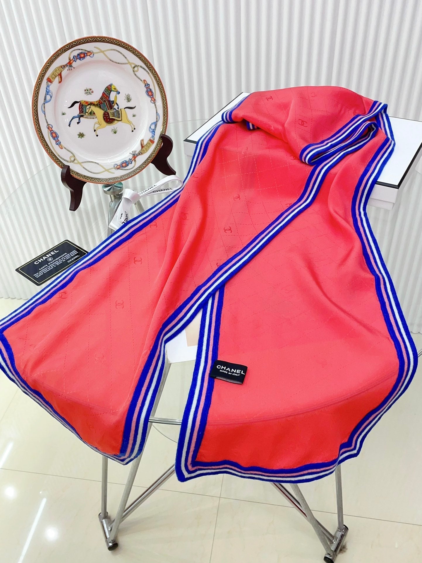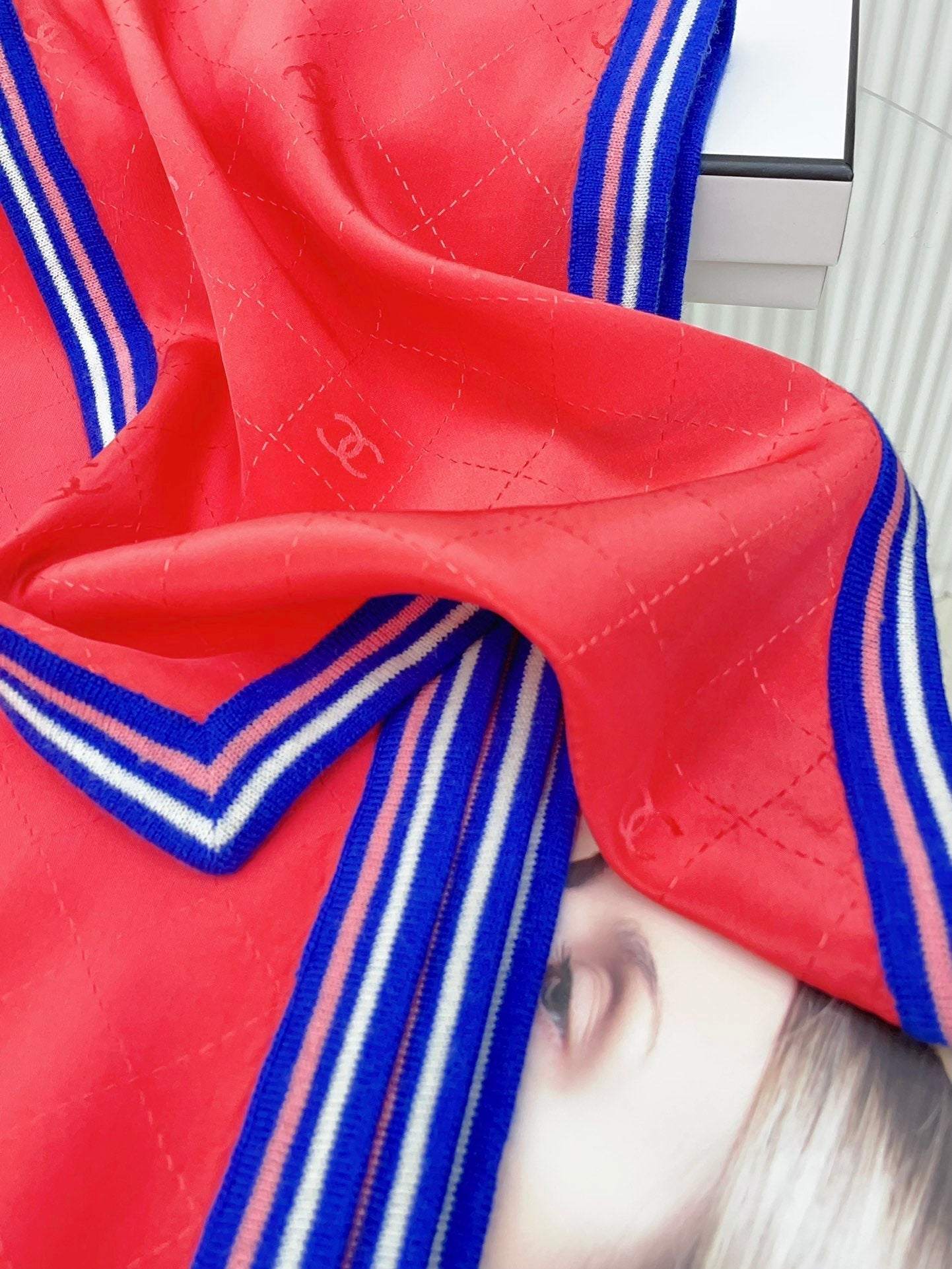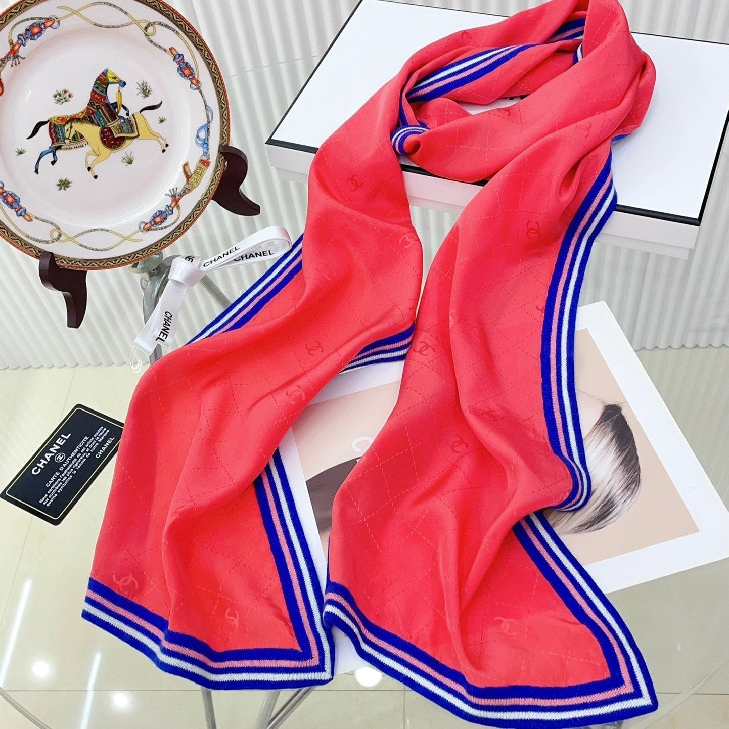 CC Scarf 200 CM In Red Mix Blue Silk 357901