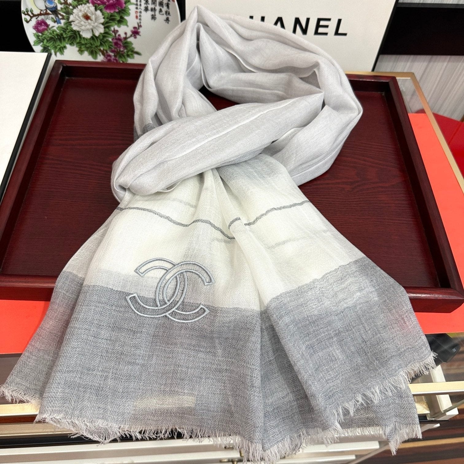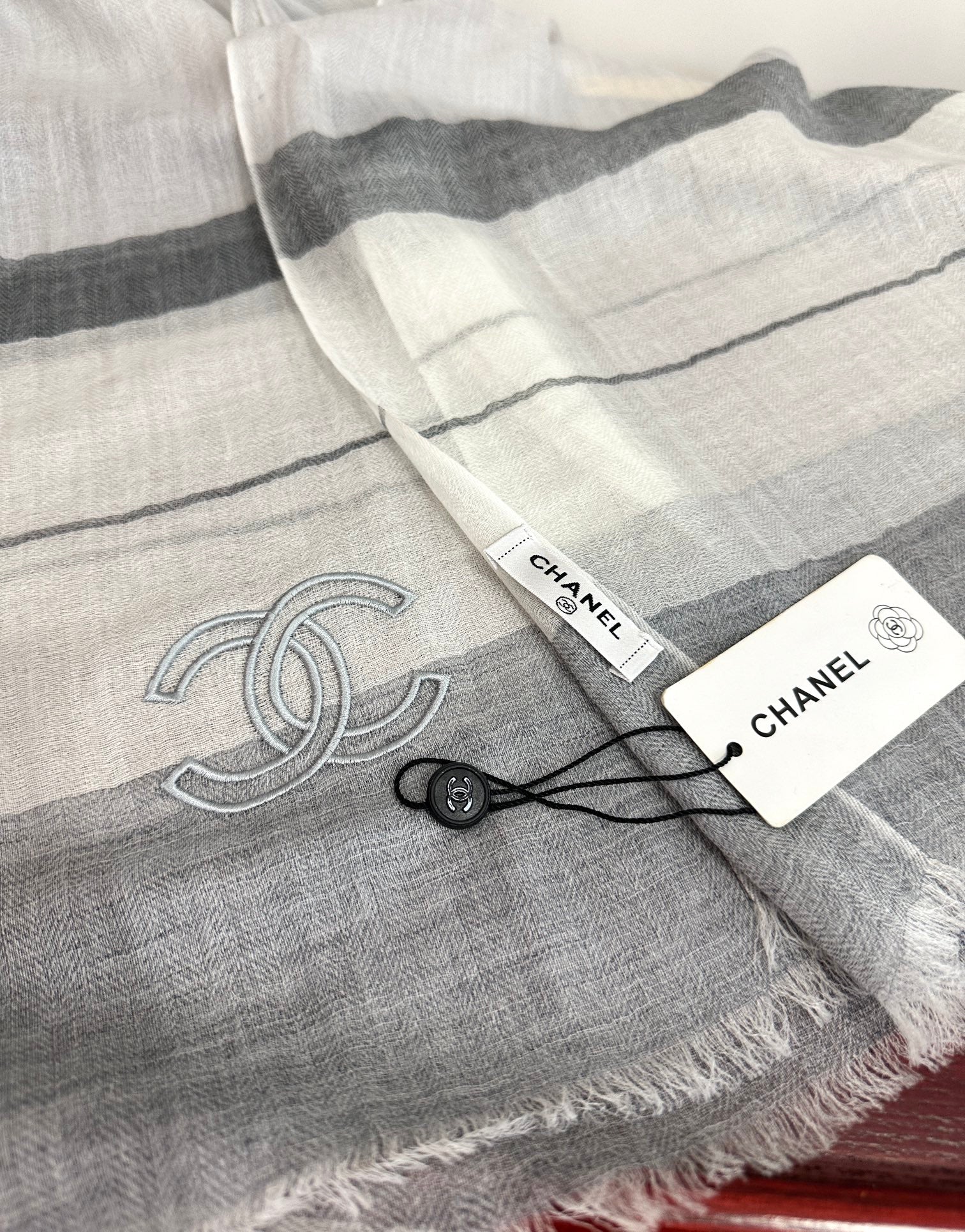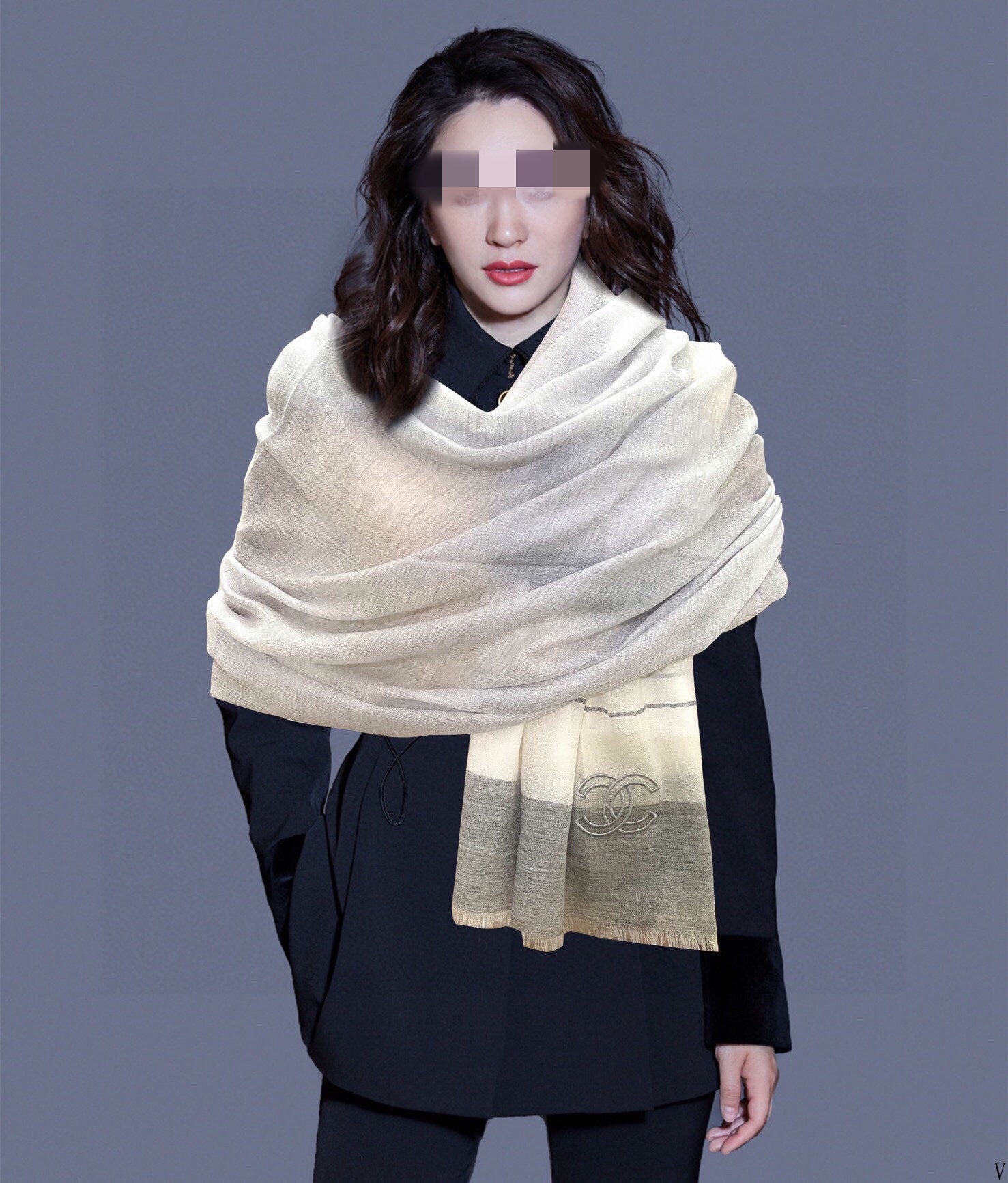 CC Scarf 200 CM In White Mix Light Grey Linen Fabric 423097