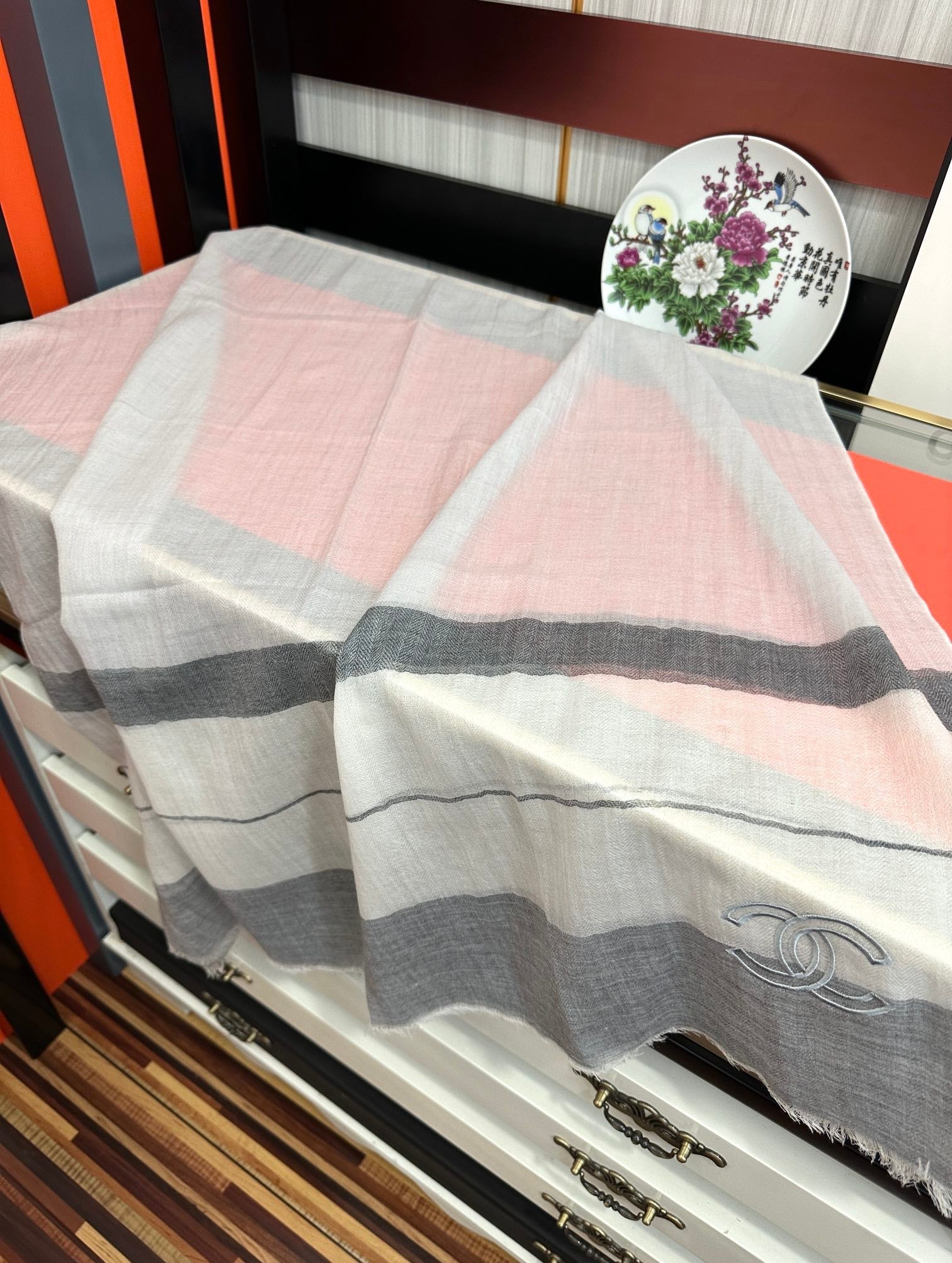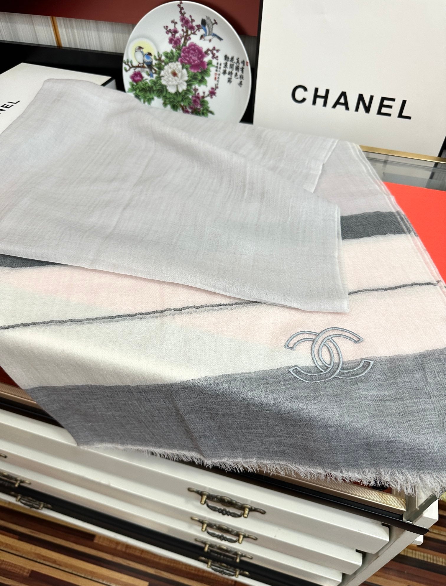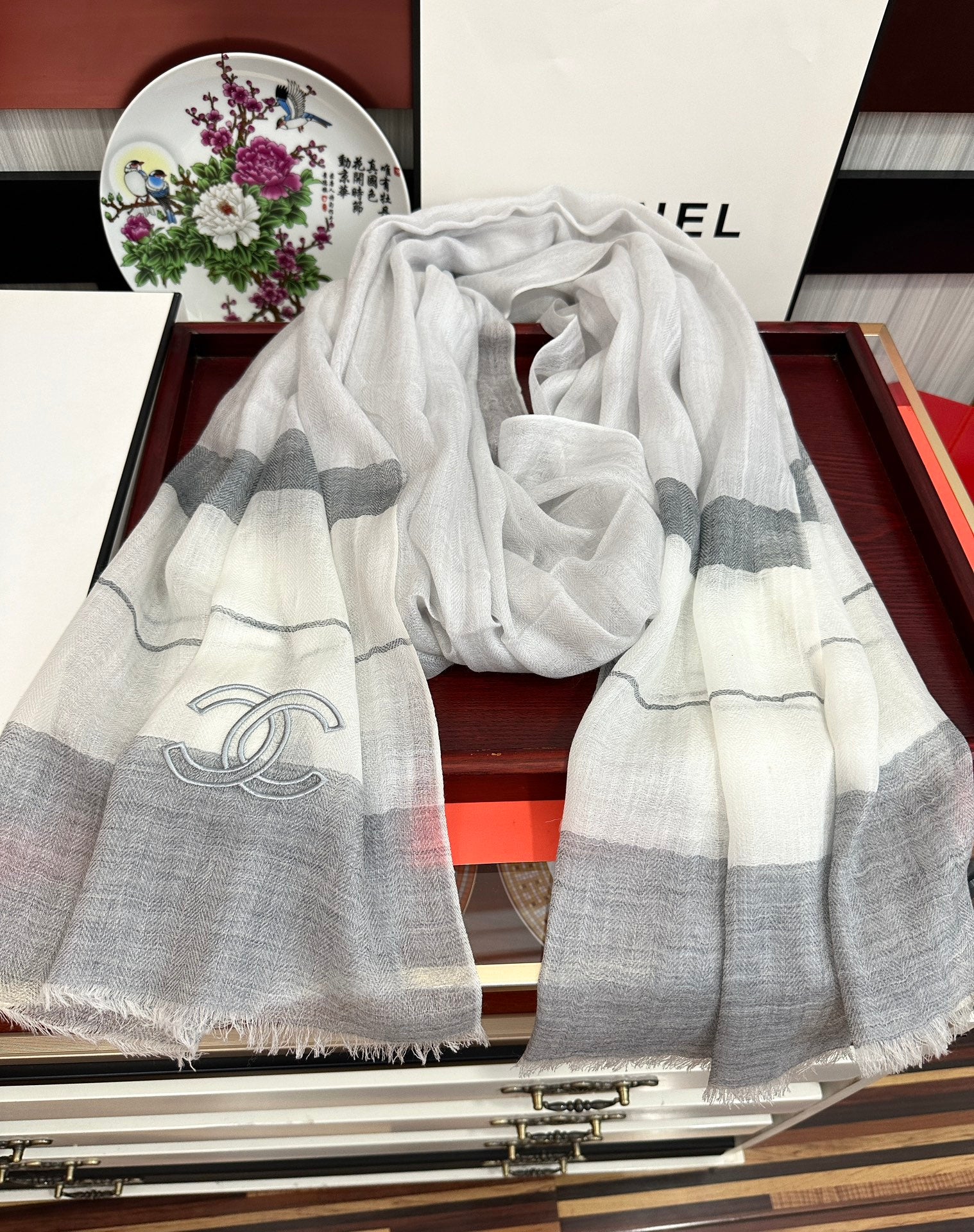 CC Scarf 200 CM In White Mix Light Grey Linen Fabric 423097