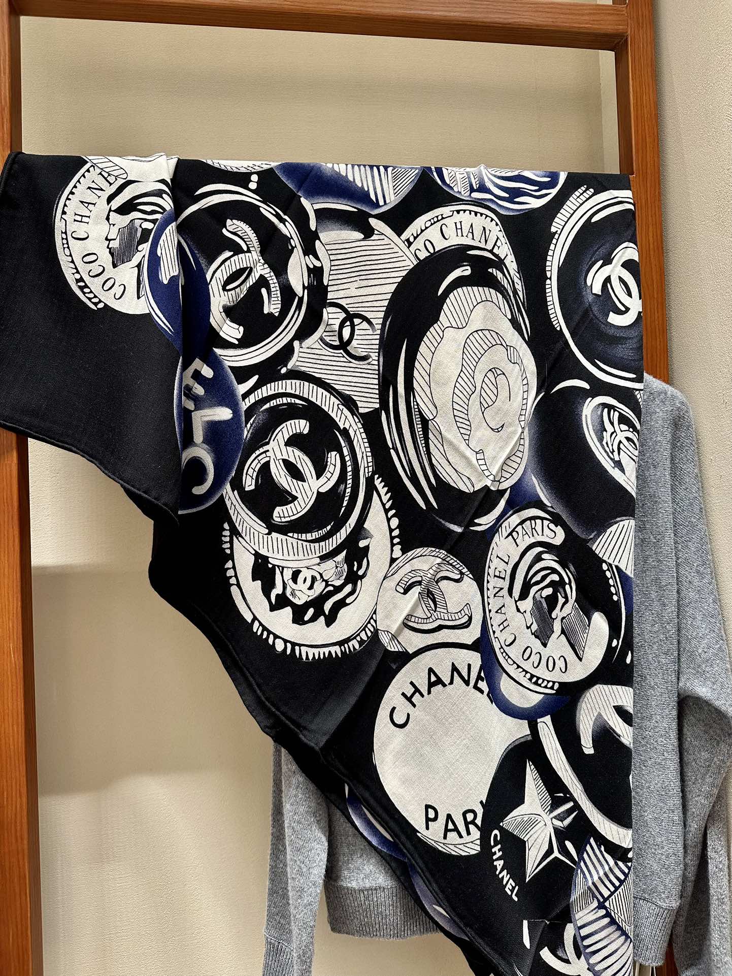 CC Square Scarf 140 CM In Black Colorful Cashmere And Silk 418150