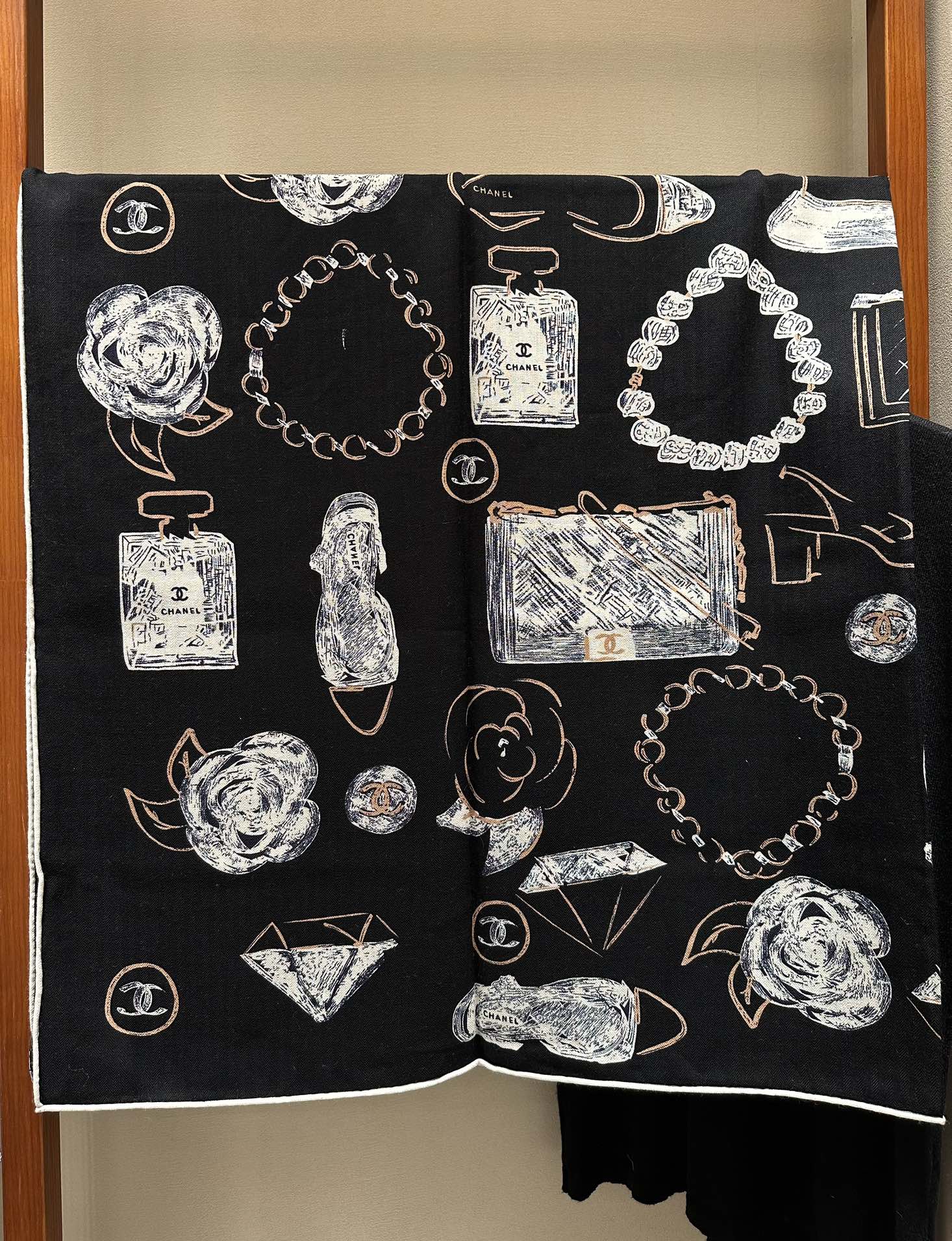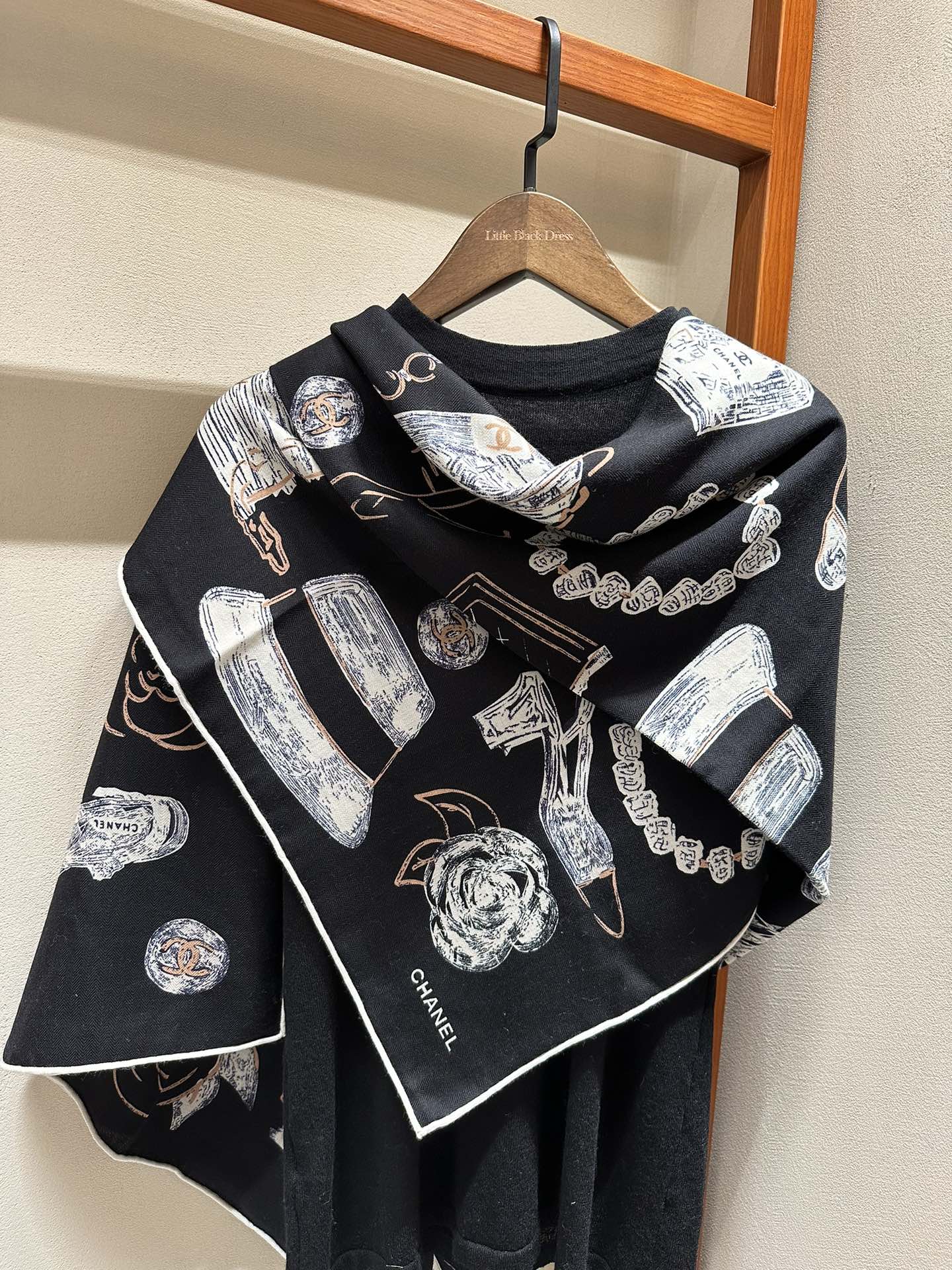 CC Square Scarf 140 CM In Black White Cashmere Silk 408655
