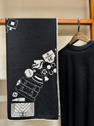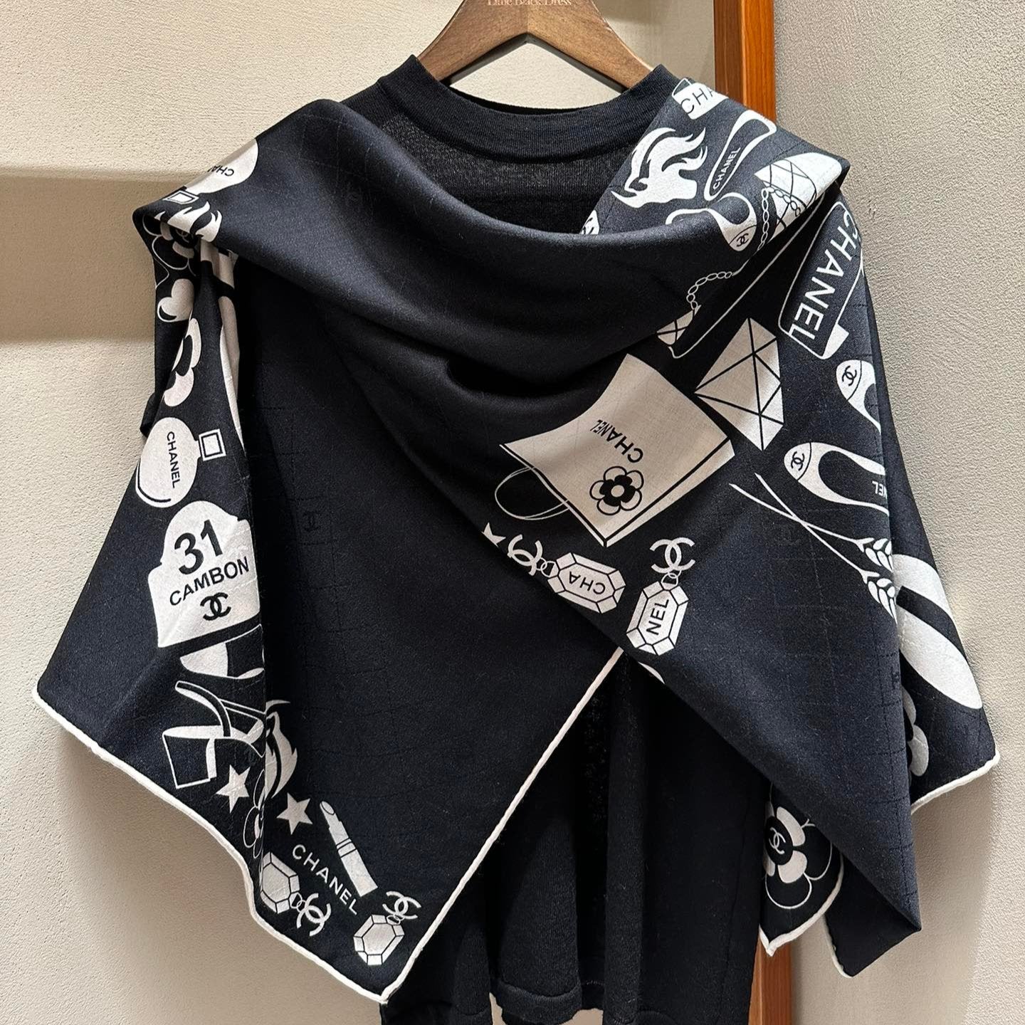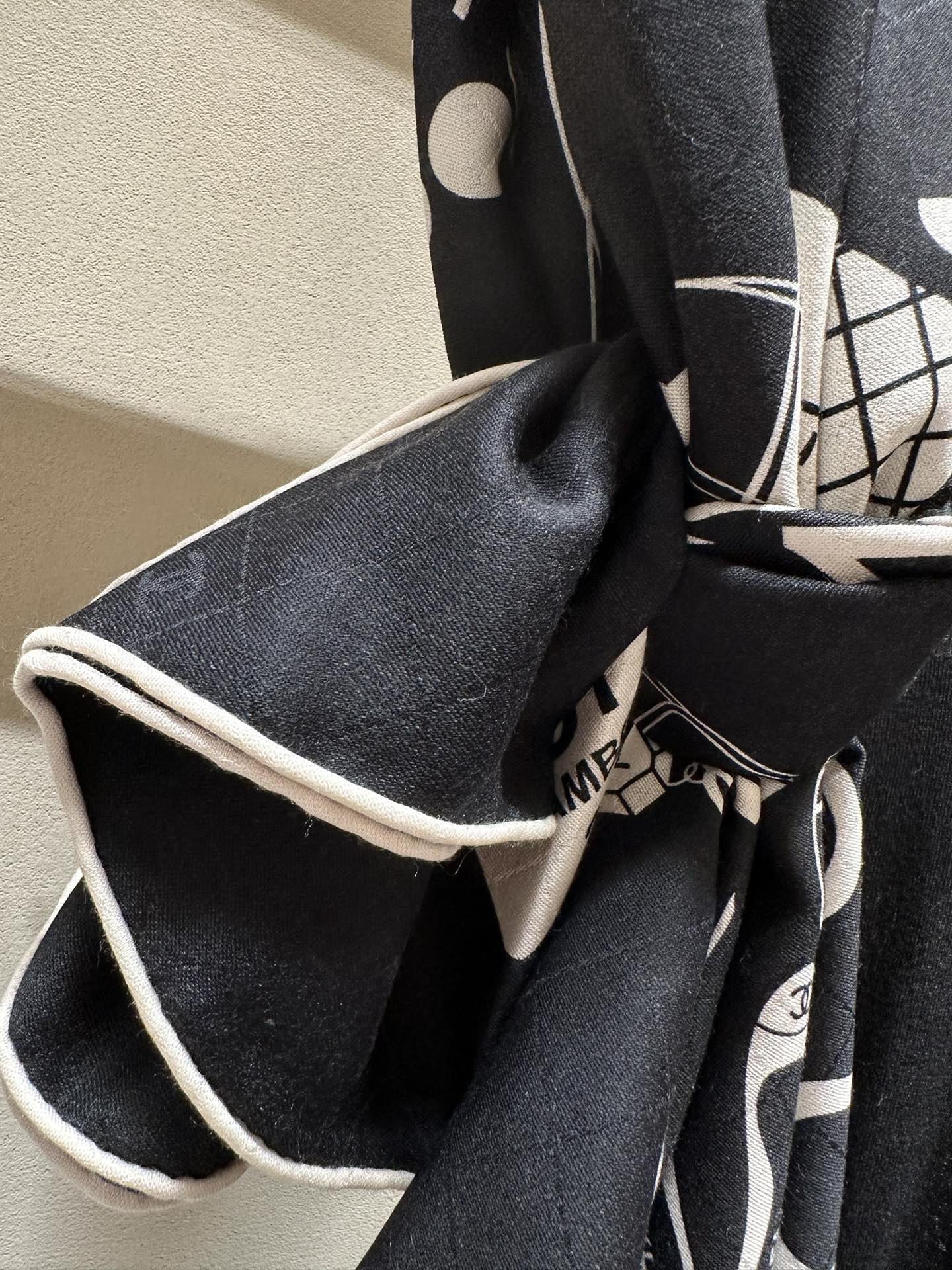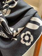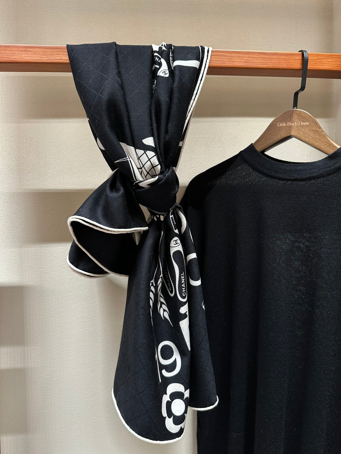 CC Square Scarf 140 CM In Black White Silk Cashmere 413675