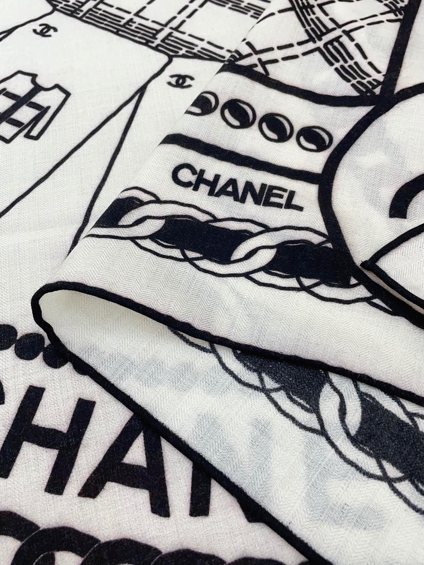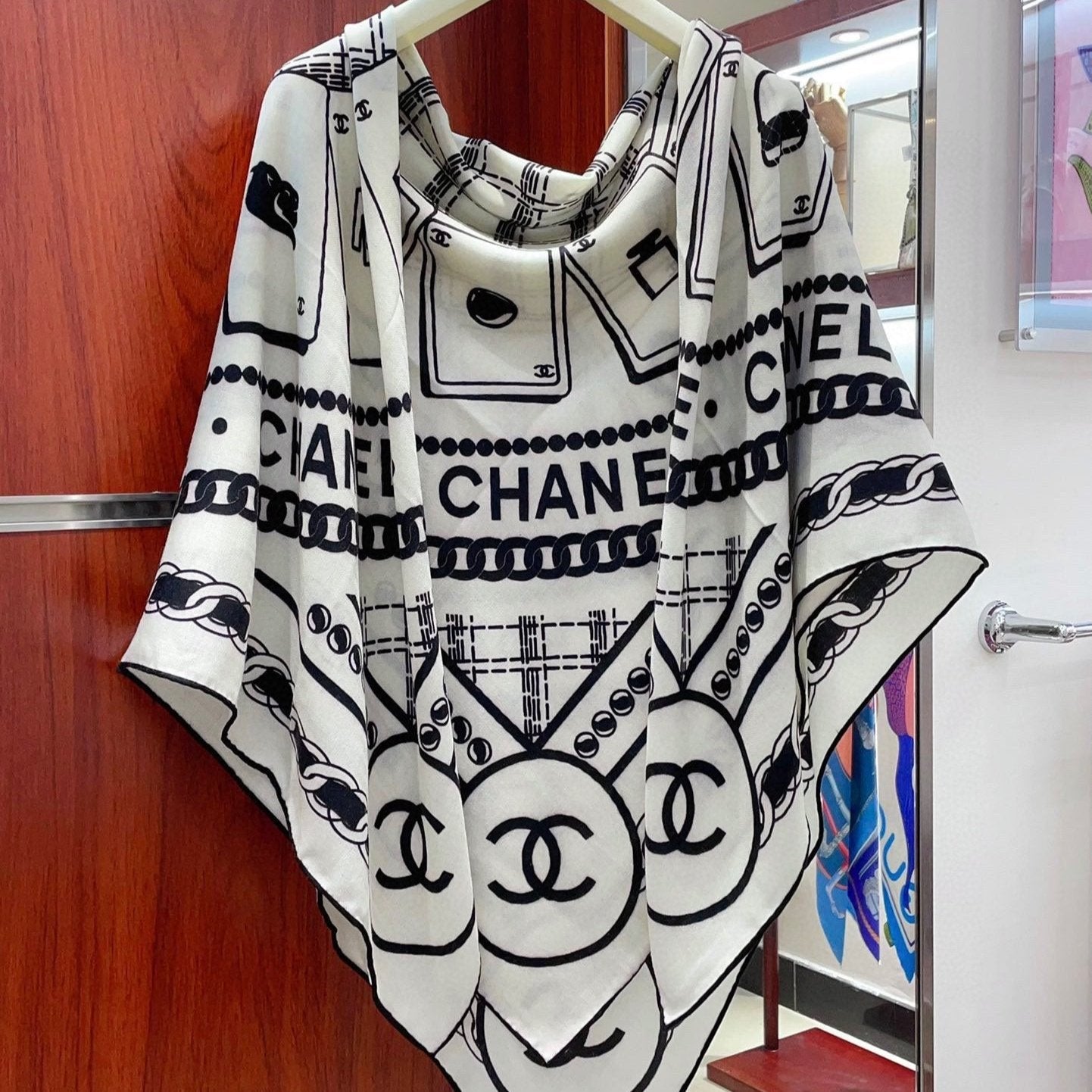 CC Square Scarf 140 CM In White Mix Black Cashmere And Silk 407279