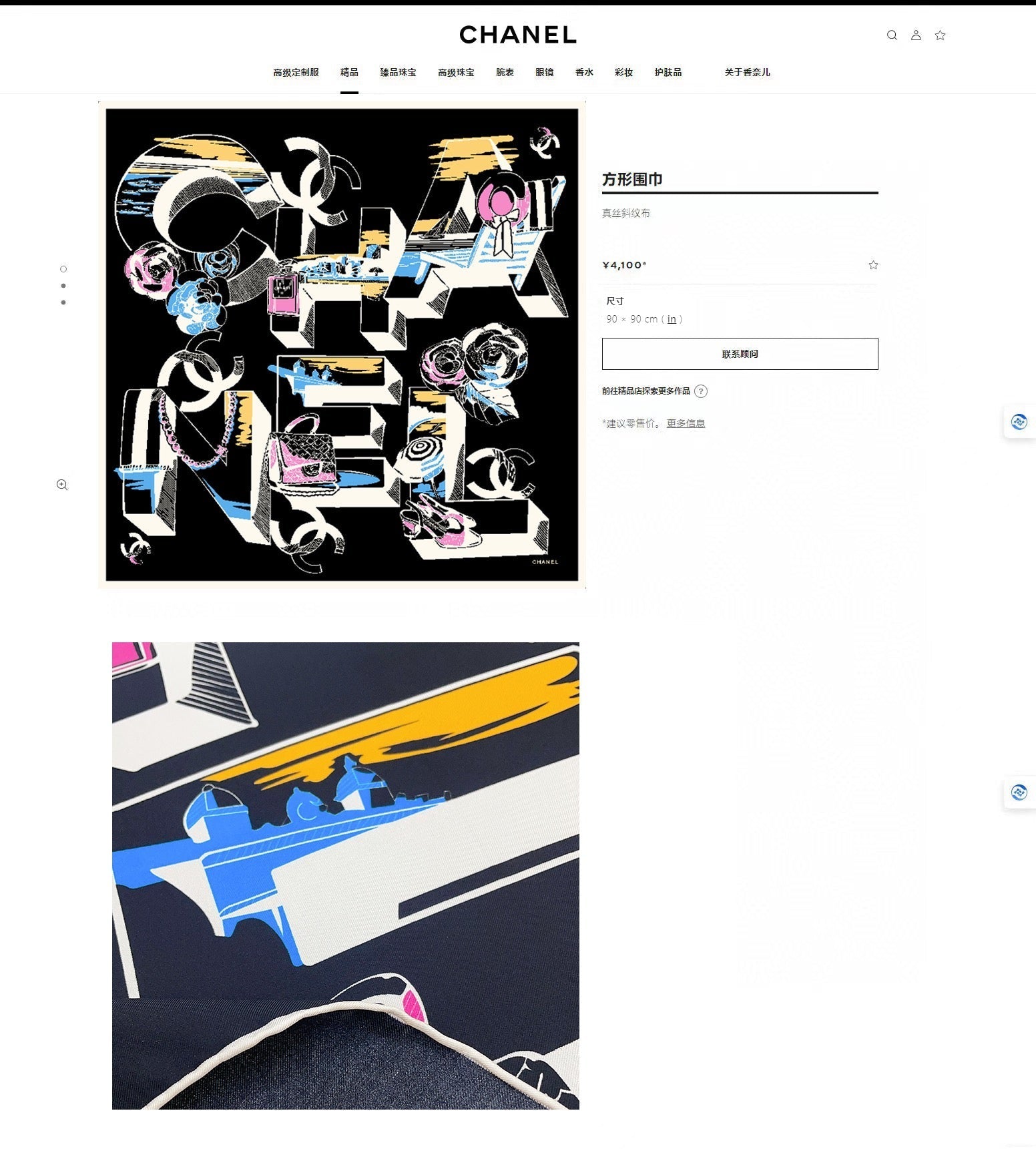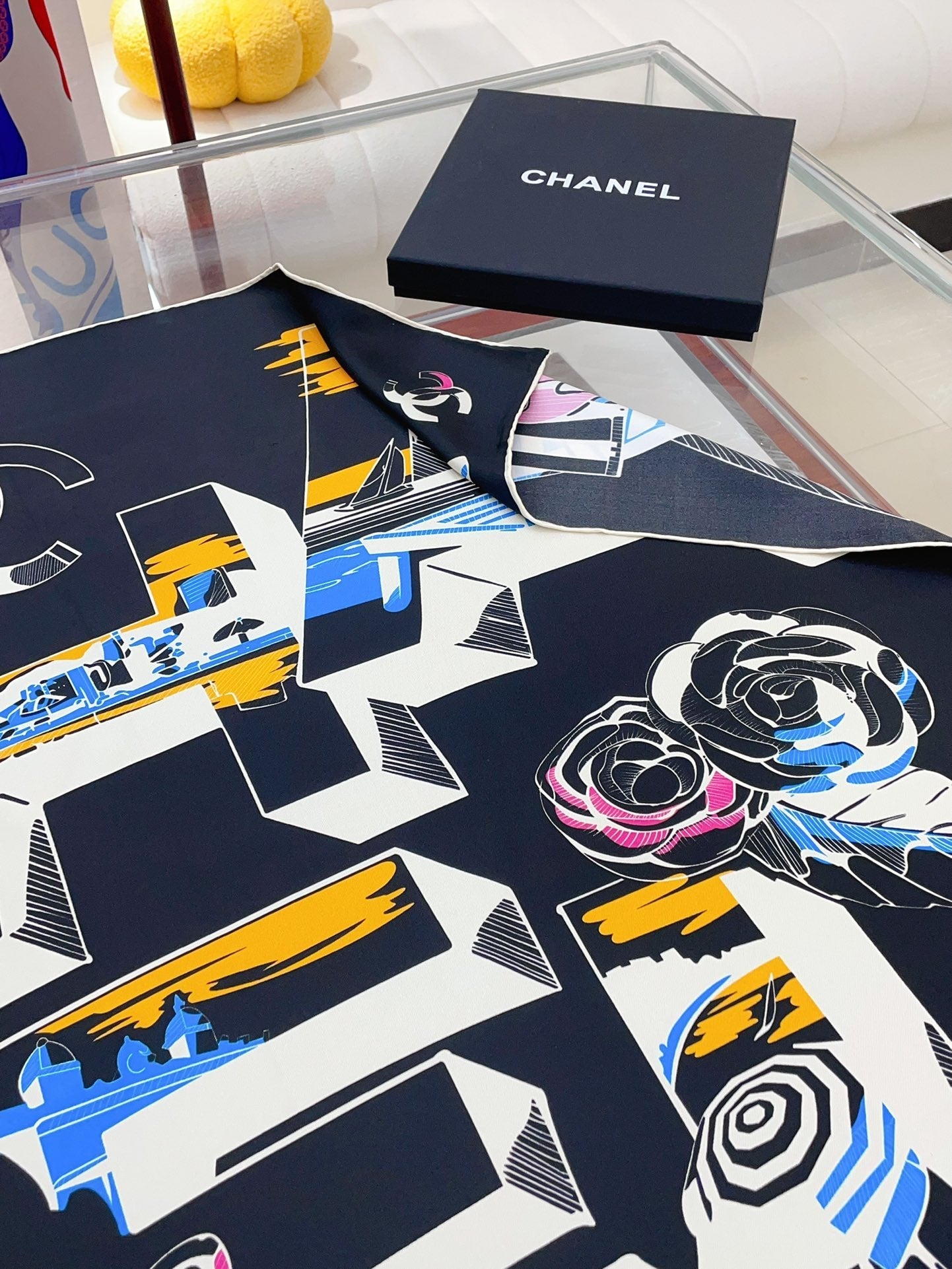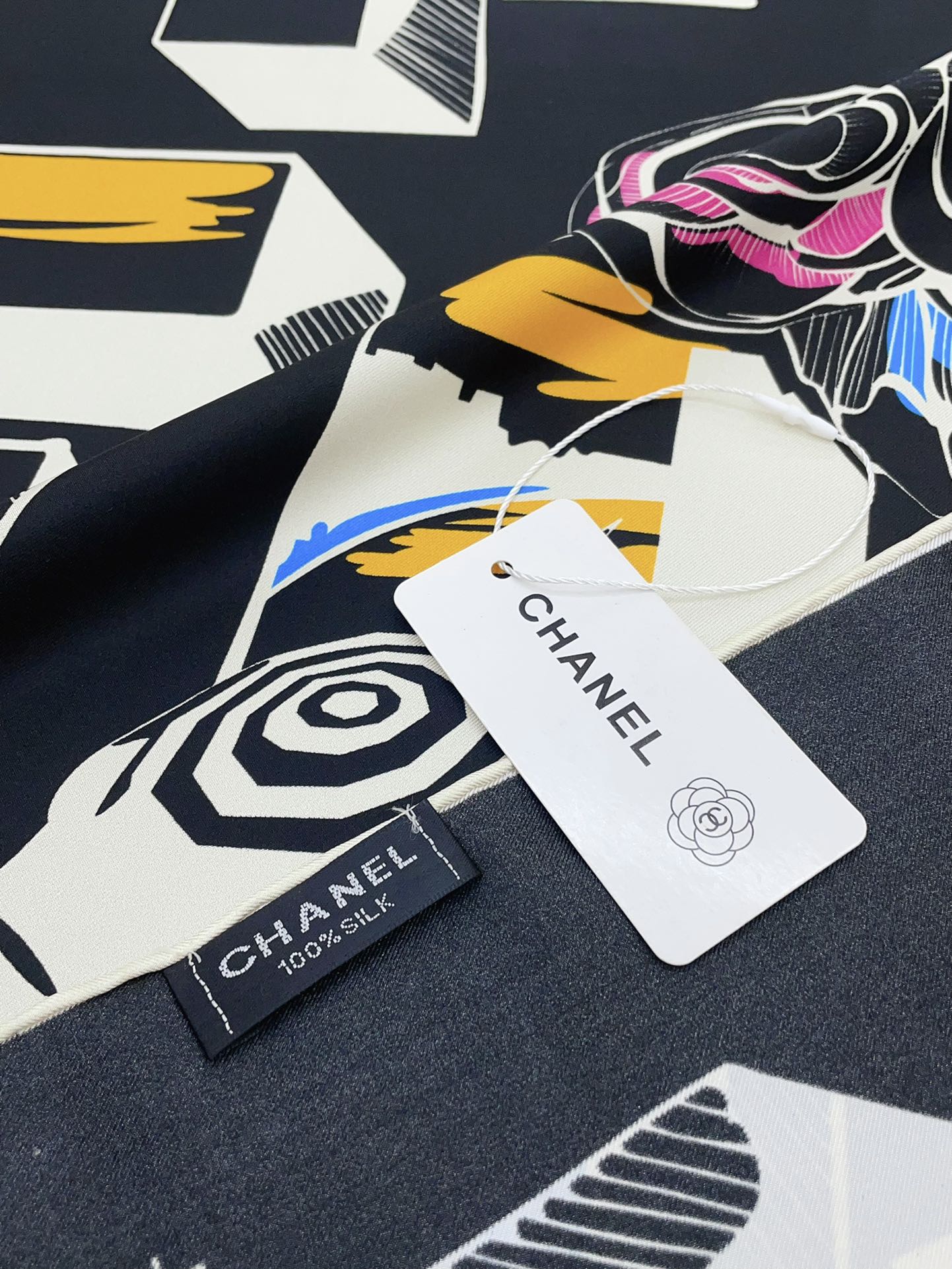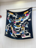 CC Square Scarf 90 CM In Black Colorful Silk Twill 211096
