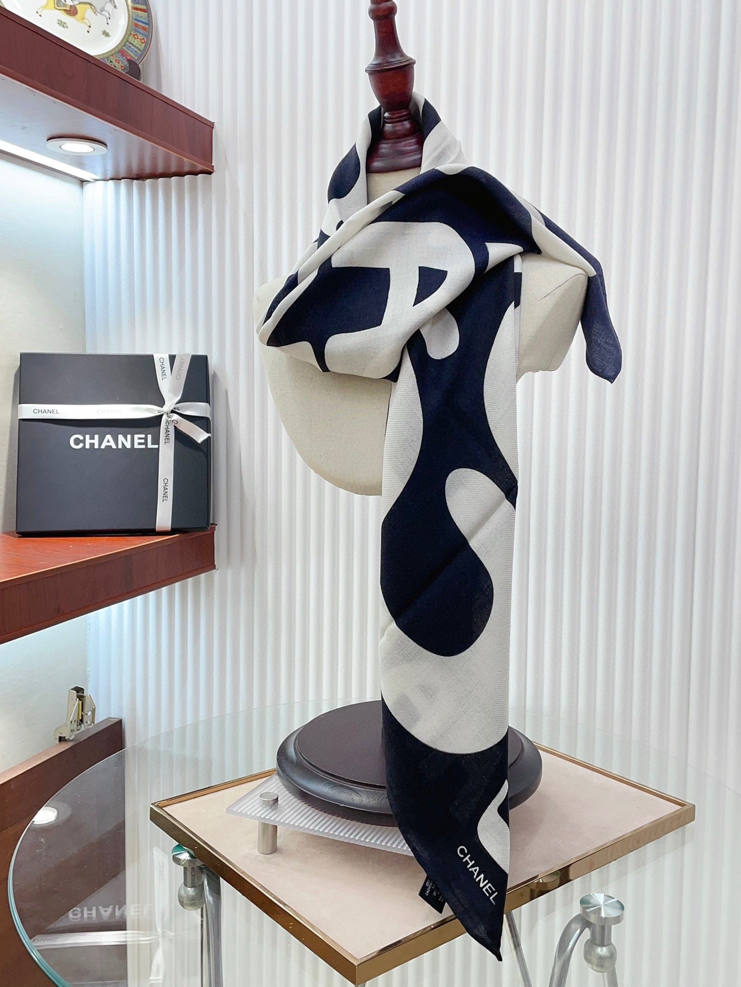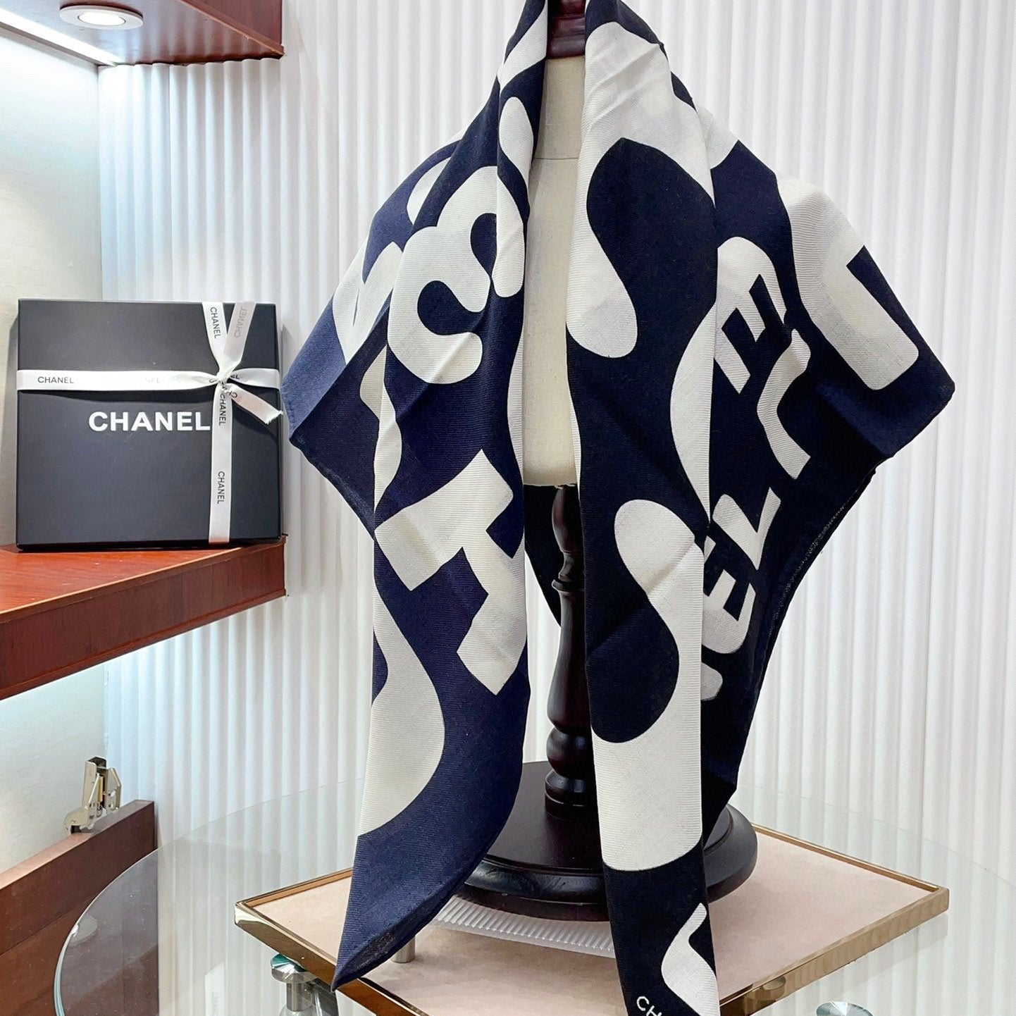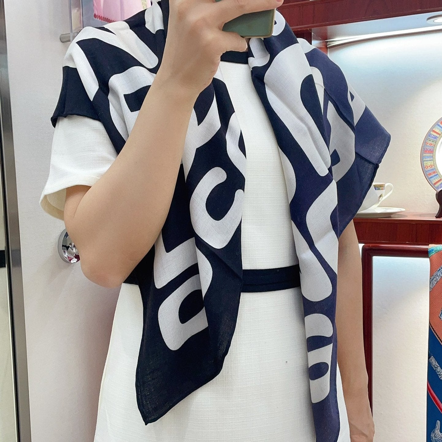 CC Square Scarf 90 CM In Black Mix White Cashmere And Silk 398258