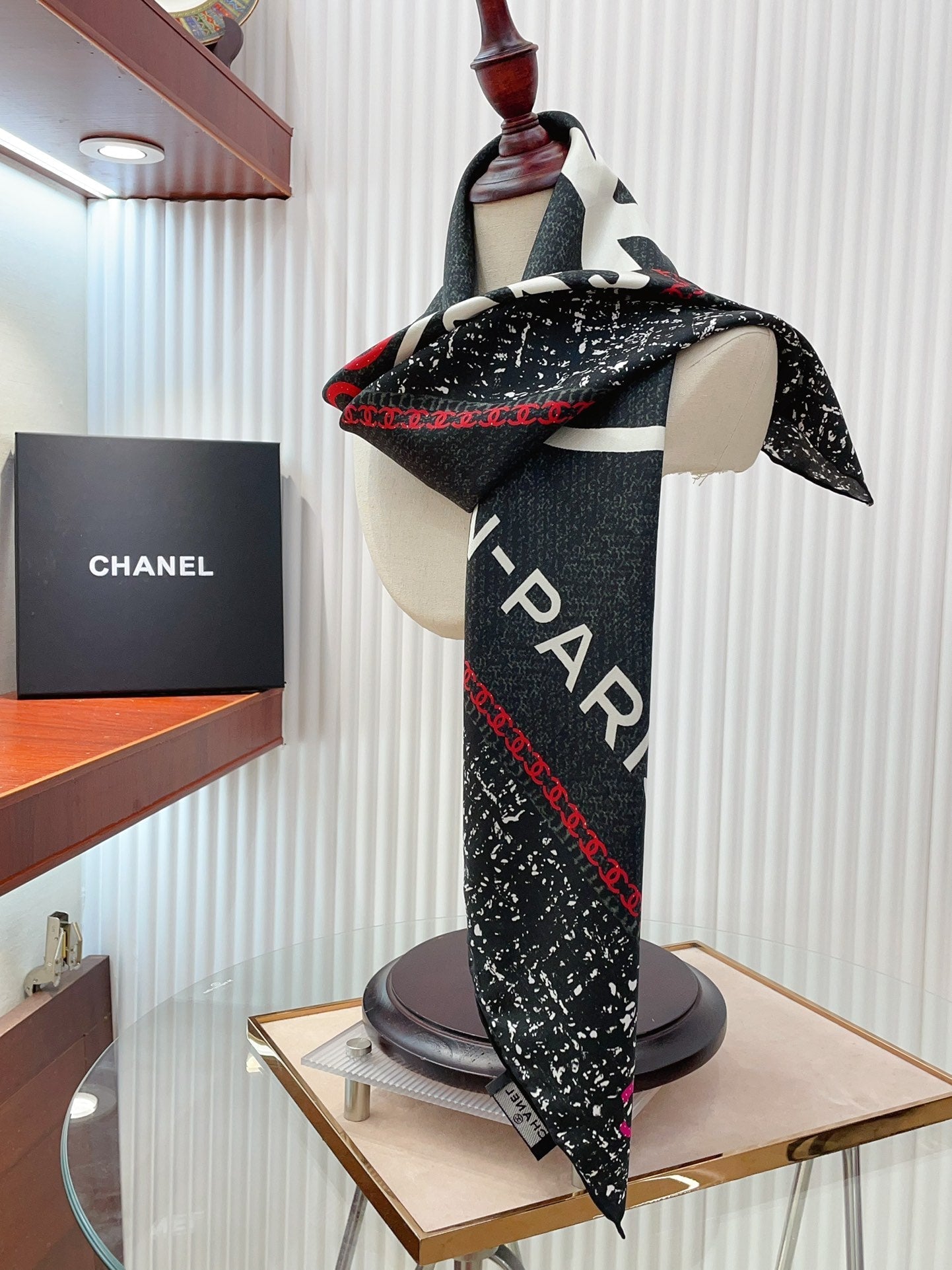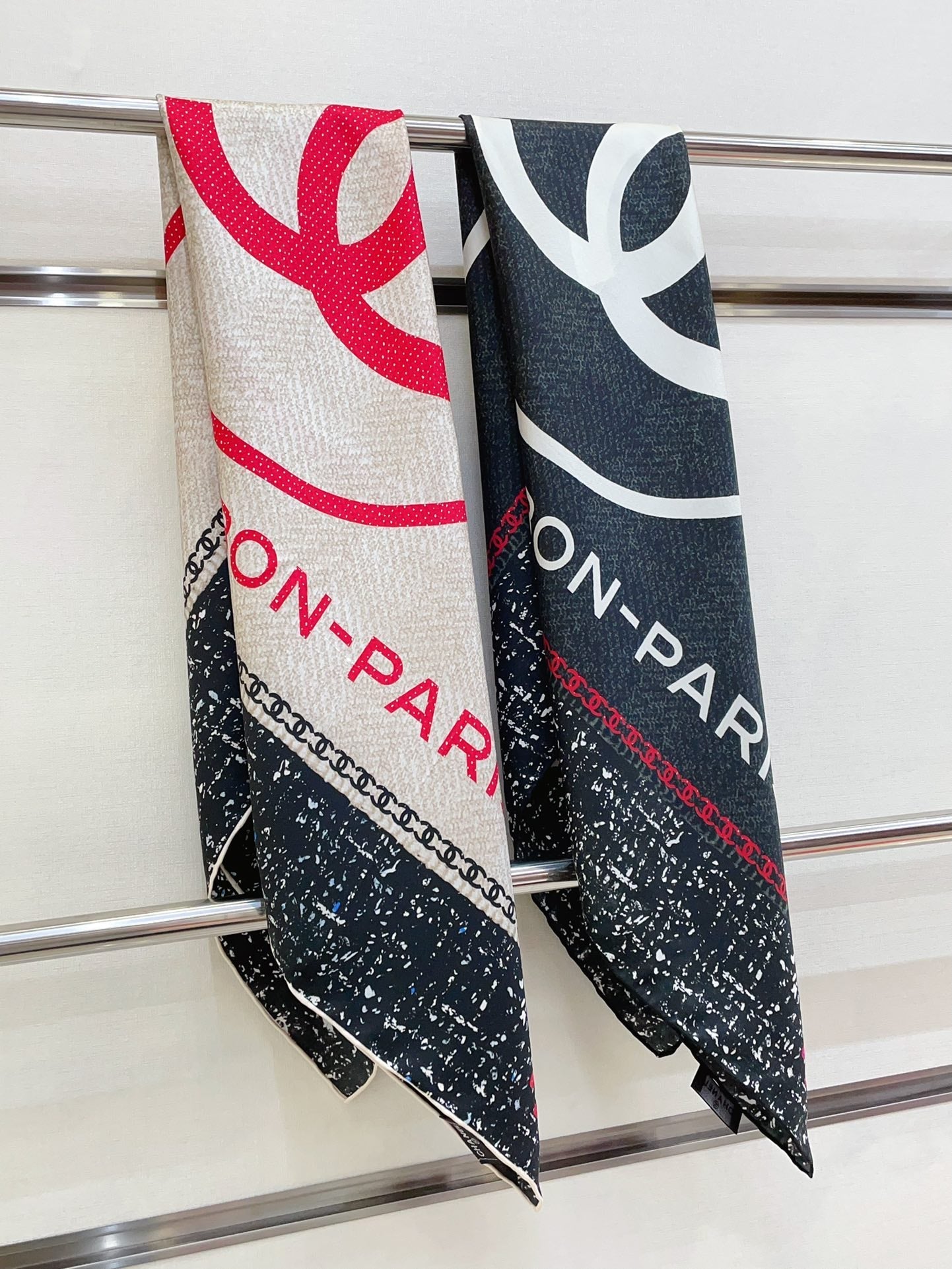 CC Square Scarf 90 CM In Black Mix White Red Cashmere Silk 172078