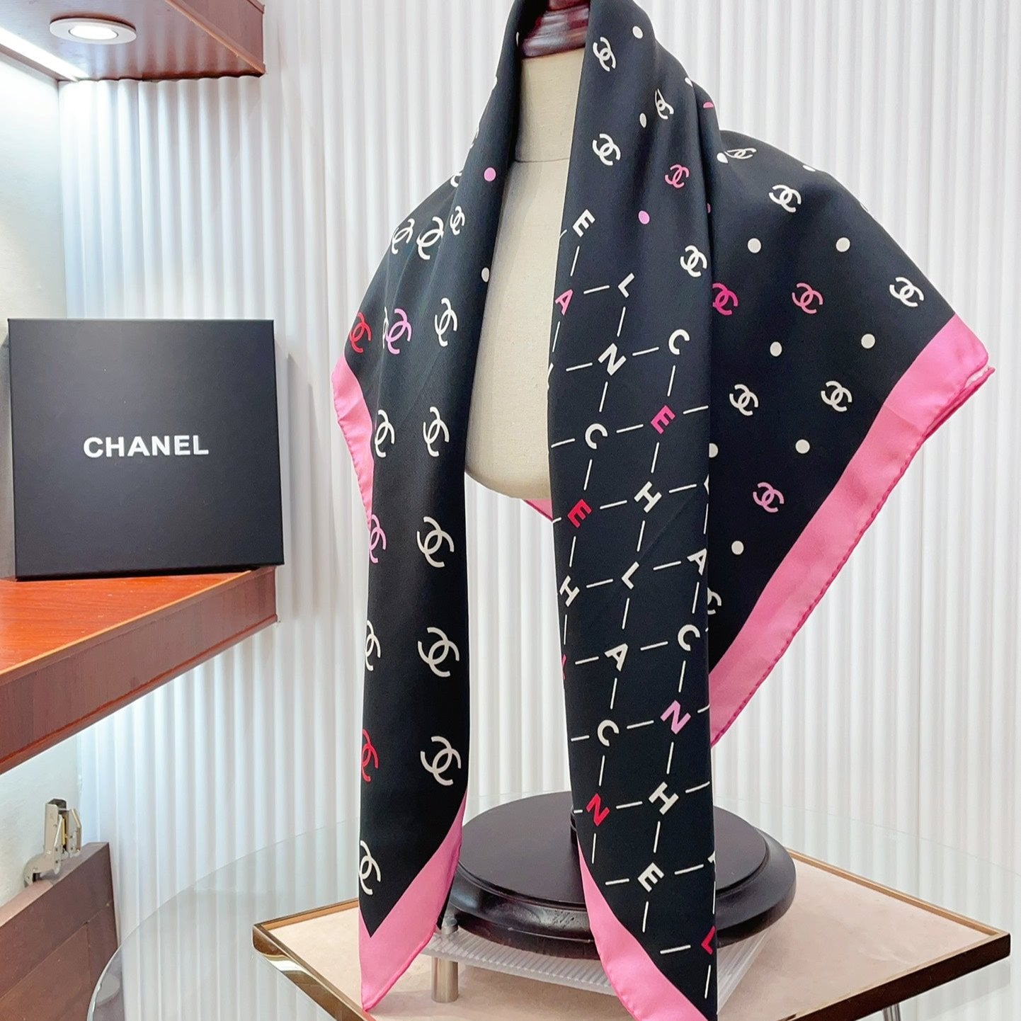 CC Square Scarf 90 CM In Black Pink Silk 167944