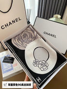 CC Square Scarf 90 CM In White Black Mix Grey Light Beige Silk 288698