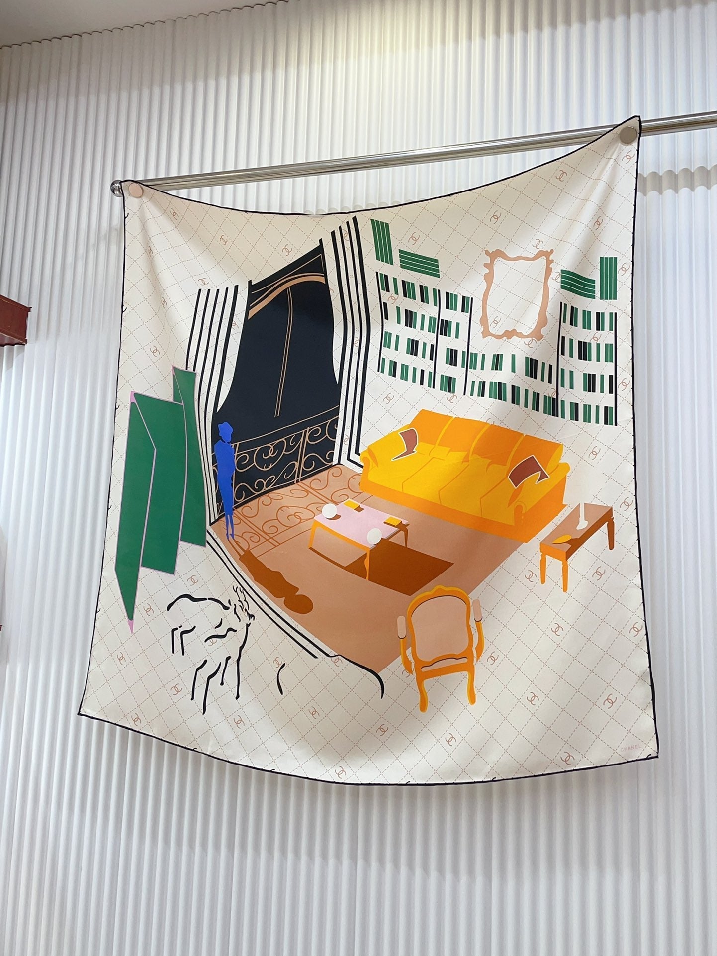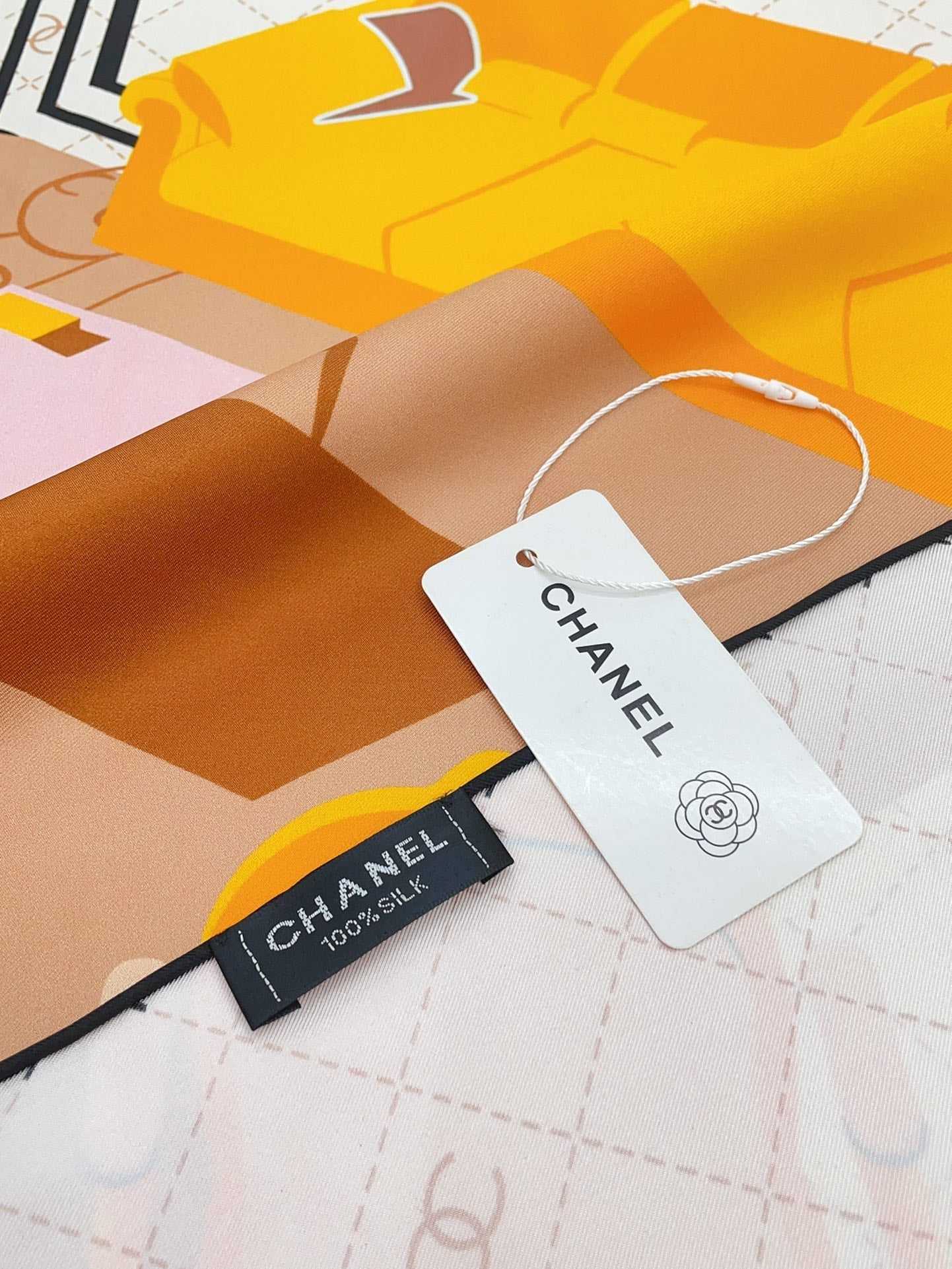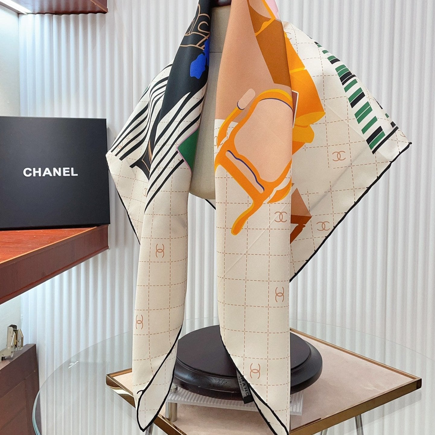 CC Square Scarf 90 CM In White Colorful Silk Twill 187426